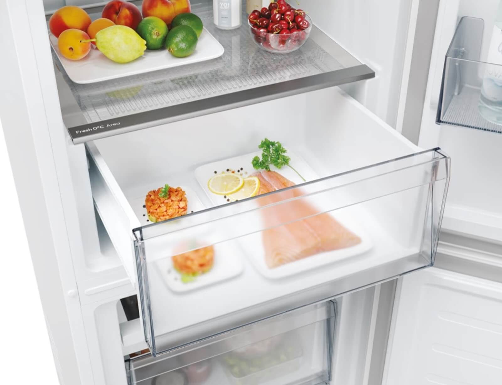 Χάρη στην περιοχή Fresh 0°C μπορείτε να προσαρμόσετε το συρτάρι της θερμοκρασίας σύμφωνα με τις ανάγκες σας: η λειτουργία 0° είναι ιδανική για ψάρια και κρέας. Όταν το απενεργοποιείτε, έχετε επιπλέον χώρο για να αποτρέψετε τη μόλυνση και να αποθηκεύσετε περισσότερα τρόφιμα.