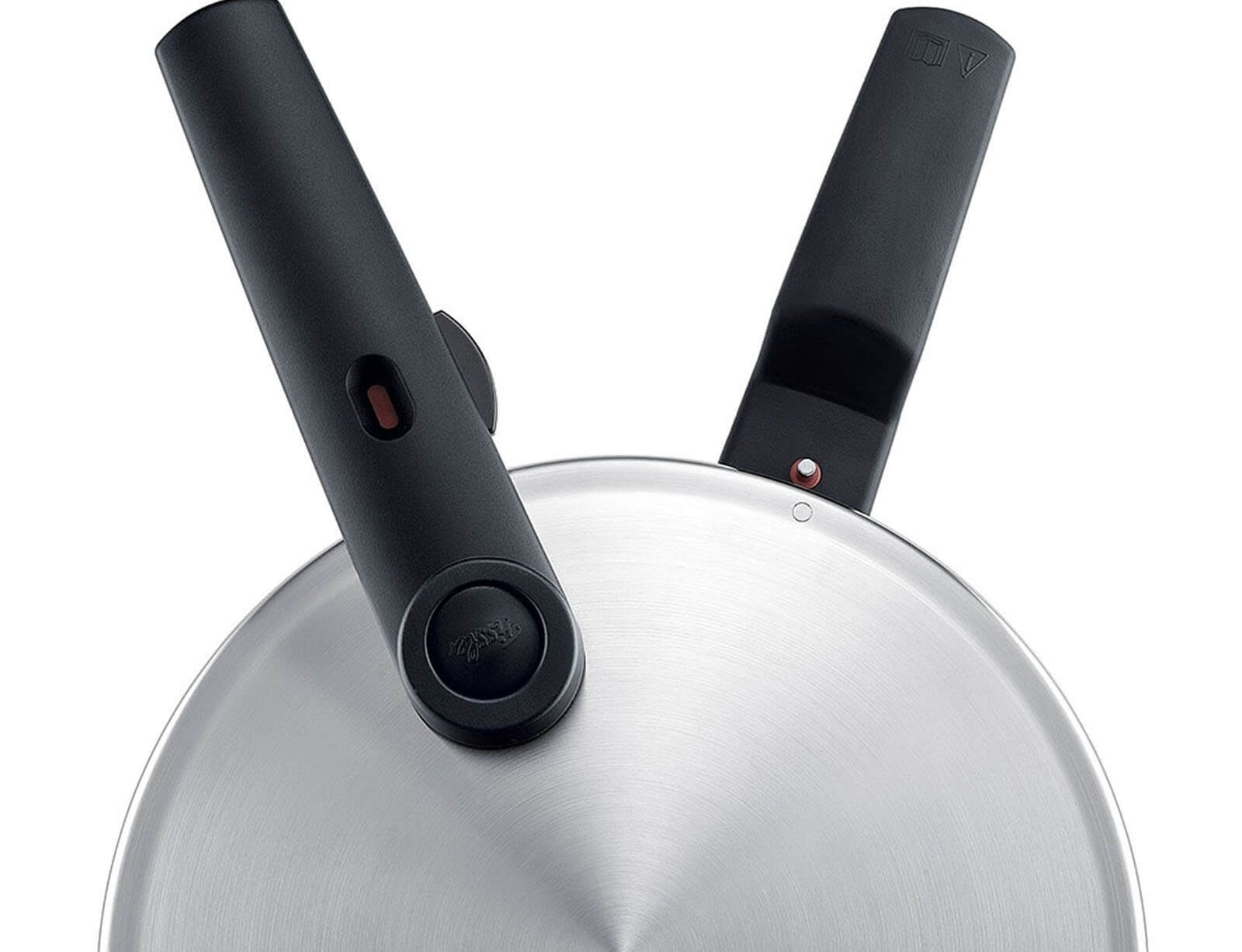 Δείκτης κλειδώματος για οπτικό και ηχητικό έλεγχο κλειδώματος για μεγαλύτερη ασφάλεια. Όταν η χύτρα ταχύτητας κλείσει σωστά, ακούγεται ένας χαρακτηριστικός ήχος "κλικ" και μια χρωματική ένδειξη στη λαβή αλλάζει από κόκκινη σε πράσινη. Tότε ξεκινά να δημιουργείται πίεση.