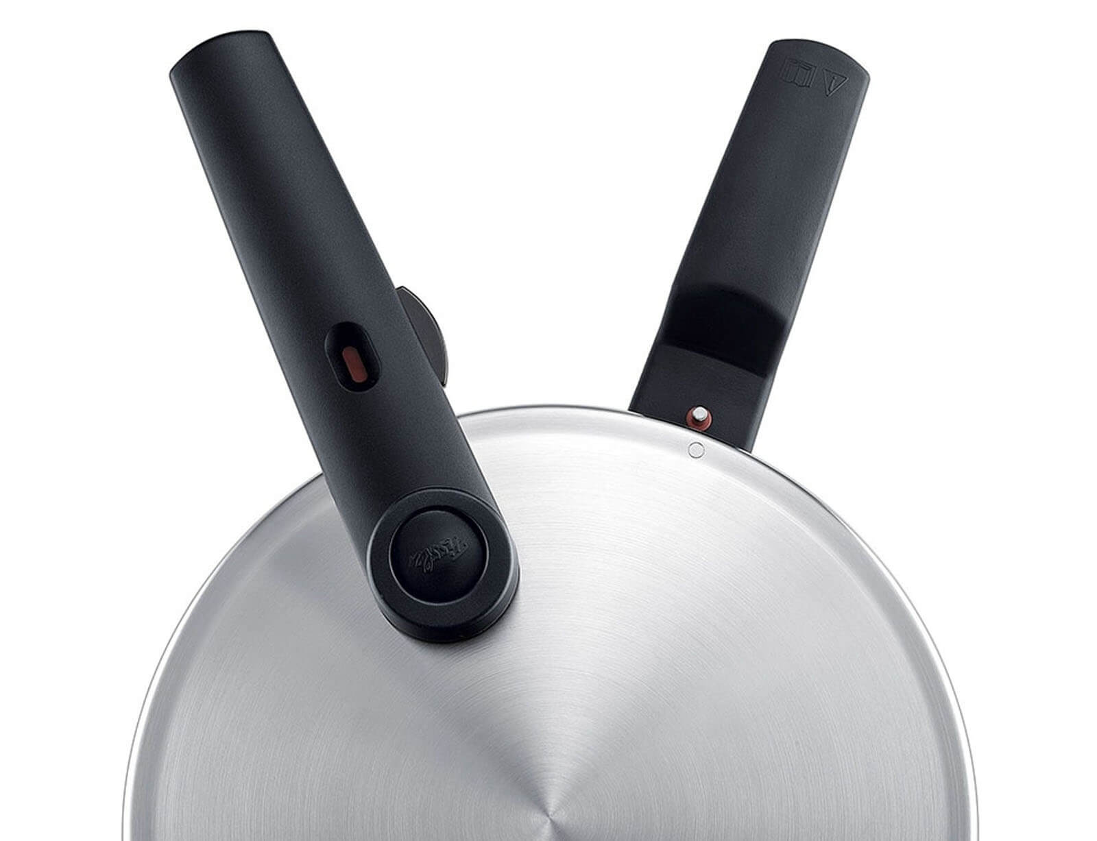 Δείκτης κλειδώματος για οπτικό και ηχητικό έλεγχο κλειδώματος για μεγαλύτερη ασφάλεια. Όταν η χύτρα ταχύτητας κλείσει σωστά, ακούγεται ένας χαρακτηριστικός ήχος "κλικ" και μια χρωματική ένδειξη στη λαβή αλλάζει από κόκκινη σε πράσινη. Tότε ξεκινά να δημιουργείται πίεση.