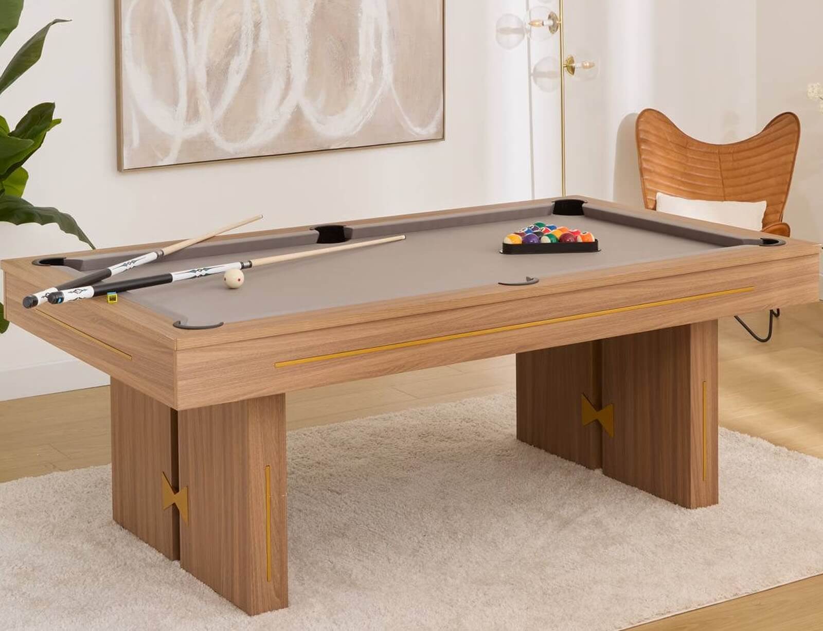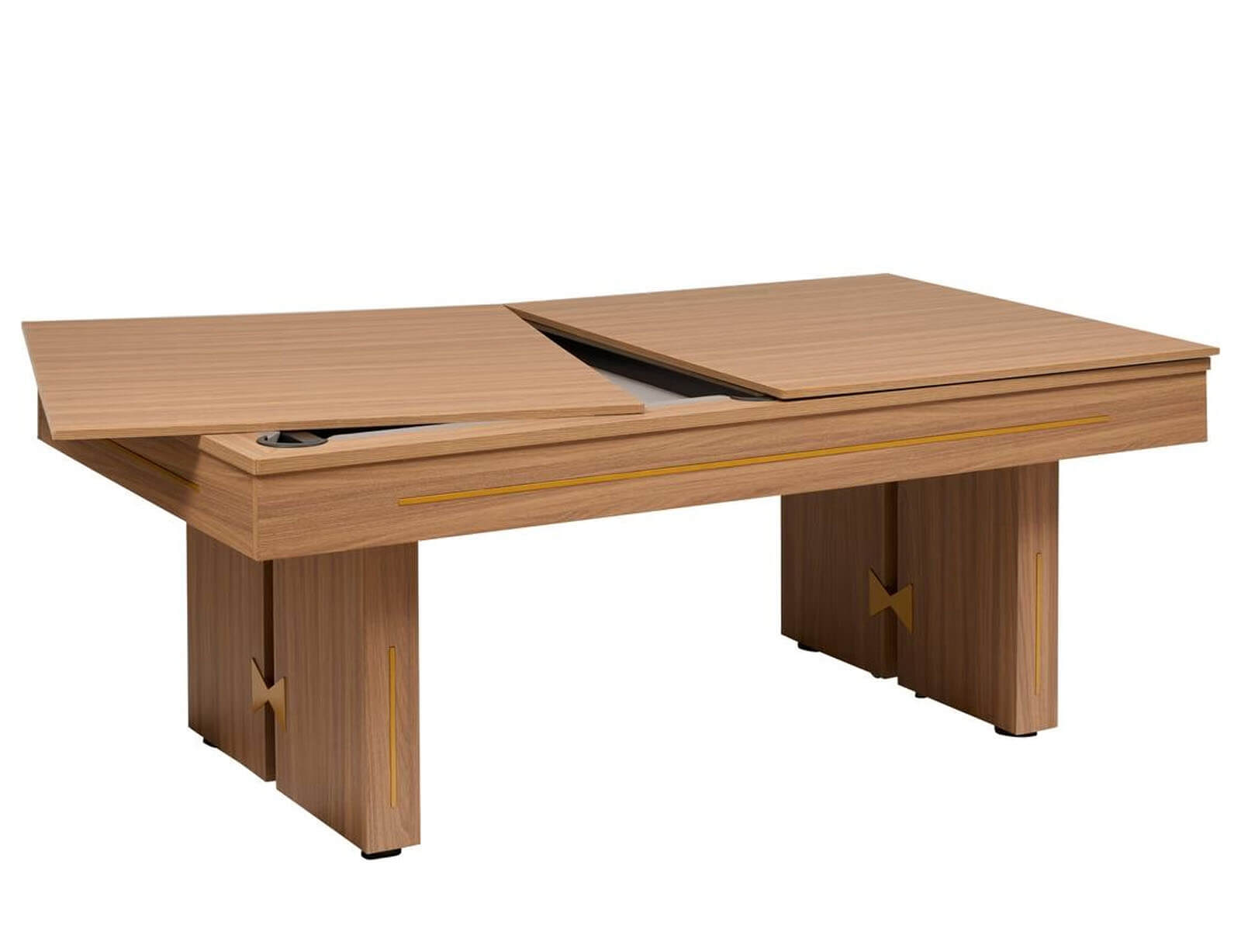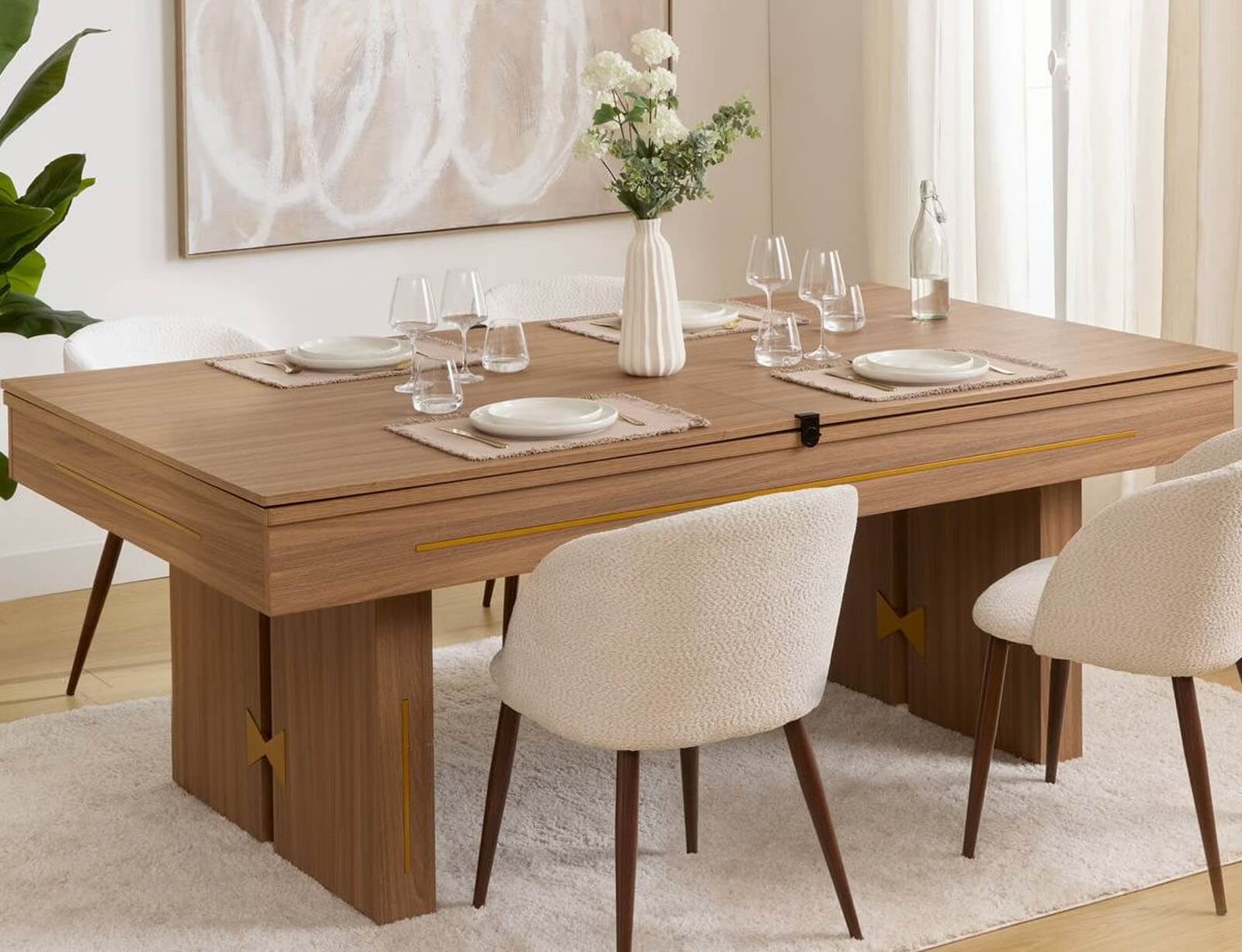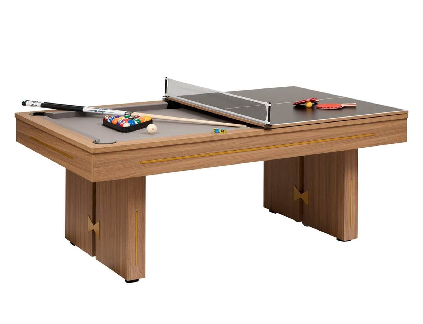 Το Dave Atmosphera είναι ένα πραγματικό πολυλειτουργικό έπιπλο 3-σε-1, σχεδιασμένο για να προσφέρει διασκέδαση, κομψότητα και πρακτικότητα σε κάθε χώρο. Η ευφυής του κατασκευή συνδυάζει τρία διαφορετικά τραπέζια σε μία ενιαία μορφή: τραπέζι μπιλιάρδου, τραπέζι πινγκ πονγκ και τραπεζαρία. Η επιφάνεια αλλάζει εύκολα, επιτρέποντάς σας να μετατρέψετε το τραπέζι από ένα διασκεδαστικό παιχνίδι σε μια κομψή τραπεζαρία μέσα σε λίγα λεπτά. Στην εκδοχή του ως τραπεζαρία, οι διαστάσεις του επιτρέπουν να καθίσουν 6 έως 8 άτομα, δημιουργώντας μια φιλική και ζεστή ατμόσφαιρα για γεύματα ή συναντήσεις με φίλους και οικογένεια.