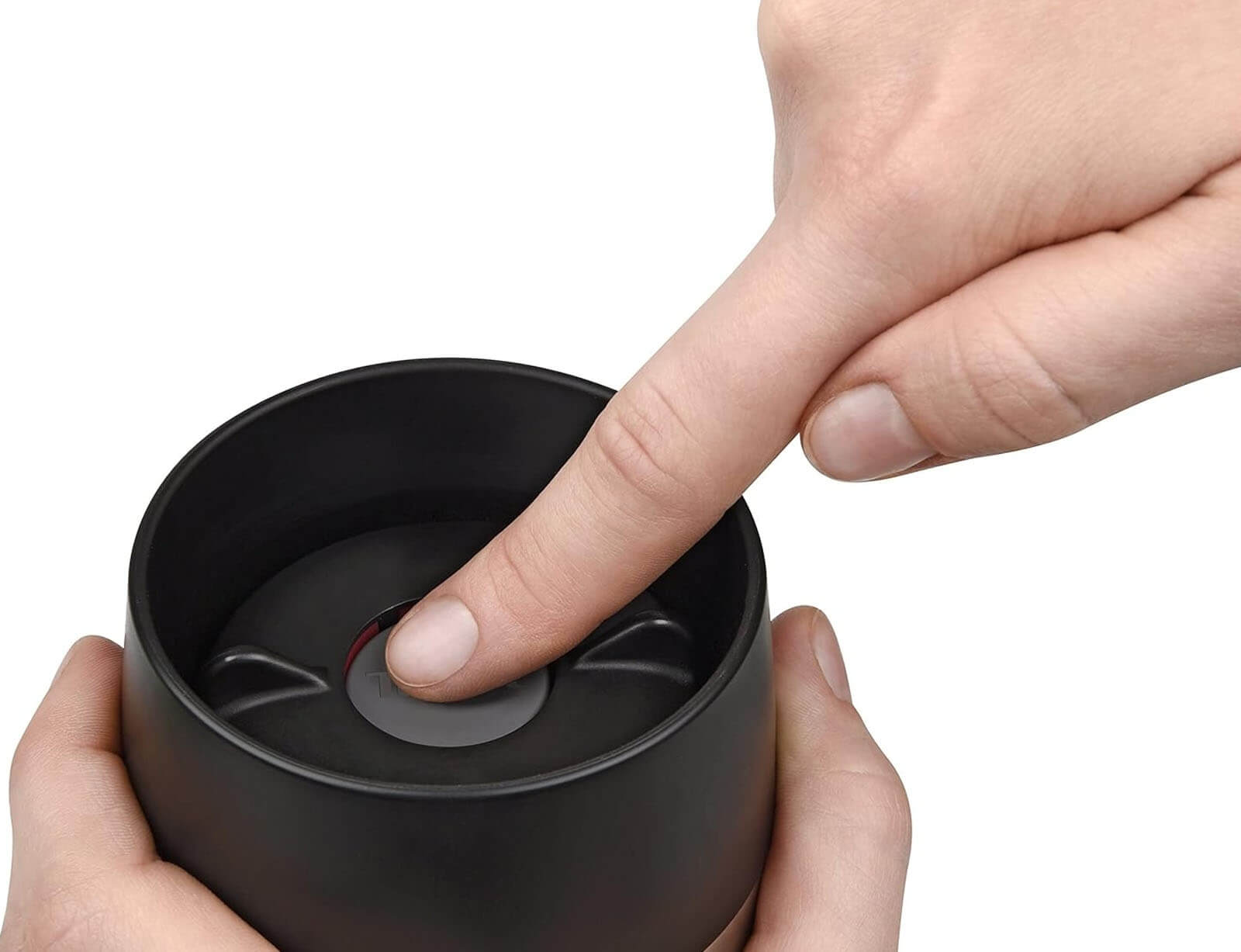 Ένα καπάκι που δεν στεγανοποιείται με γρήγορο πάτημα κάνει την κατανάλωση ποτού εν κινήσει ασφαλή και εύκολη.
