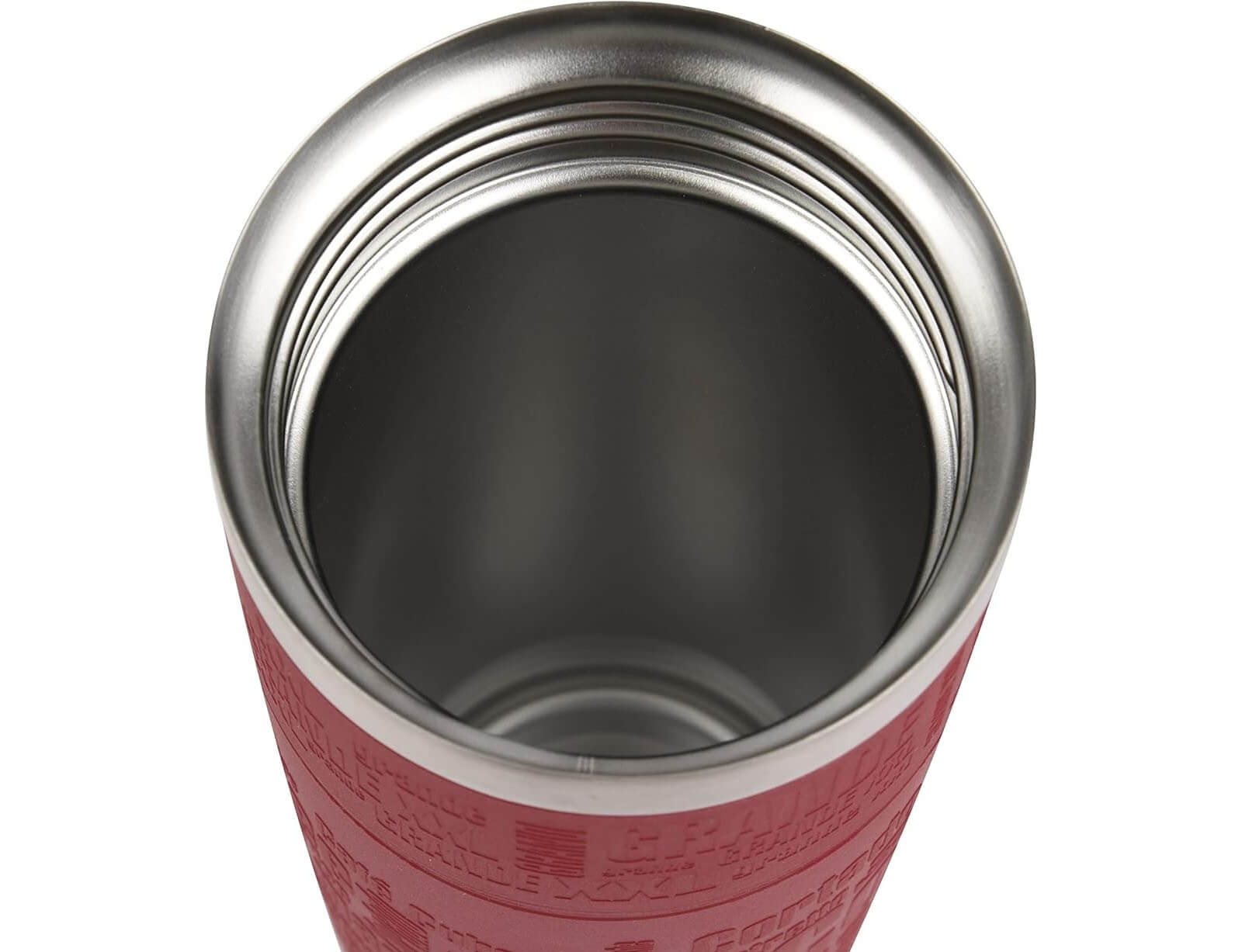Το σώμα από ανοξείδωτο ατσάλι της κούπας ταξιδιού Tefal είναι τυλιγμένο σε ένα ανάγλυφο, απαλό μανίκι σιλικόνης για ασφαλές κράτημα όταν βρίσκεστε εν κινήσει. Διαθέτει επίσης αντιολισθητική βάση για να μην γλιστράει αν το ταξίδι σας γίνει λίγο ανώμαλο.