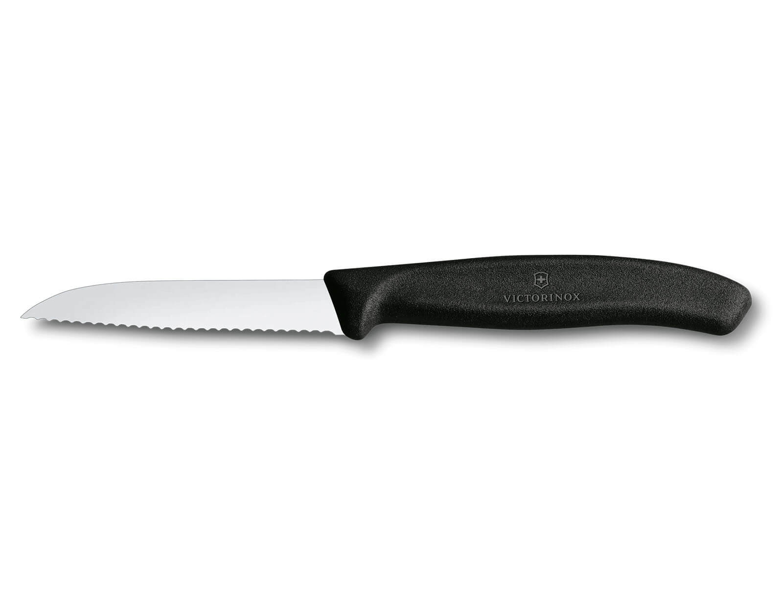 Ετοιμάστε γεύματα σαν επαγγελματίας με αυτό το μαχαίρι. Διαθέτει μια επαγγελματική κοφτερή λεπίδα από ανοξείδωτο ατσάλι με κυματιστή άκρη και μυτερή άκρη, ιδανική για ένα ευρύ φάσμα ακριβών εργασιών προετοιμασίας. Η ελαφριά, εργονομική λαβή του έχει σχεδιαστεί για να παρέχει βέλτιστη άνεση και έλεγχο. Κατασκευασμένο στην Ελβετία και κατάλληλο για πλυντήριο πιάτων, προσφέρει αξιοπιστία και αποτελεσματικότητα για καθημερινή χρήση στην κουζίνα.