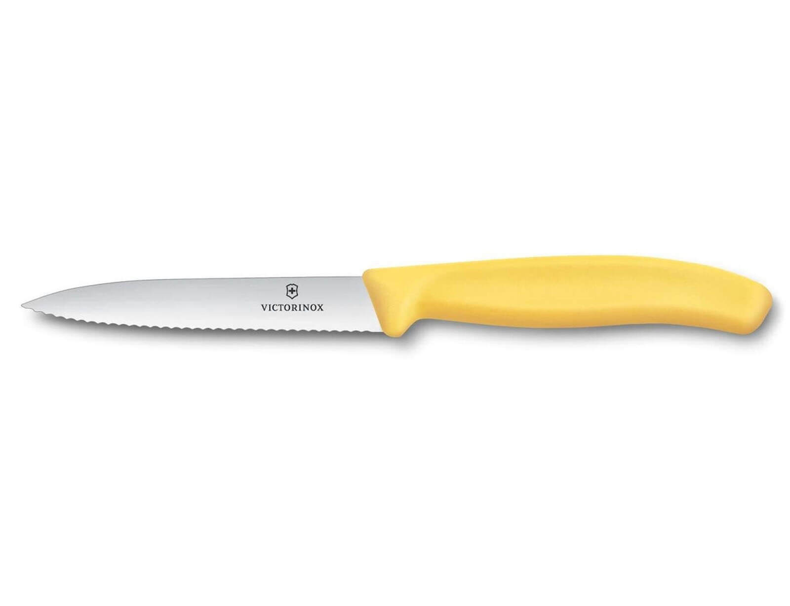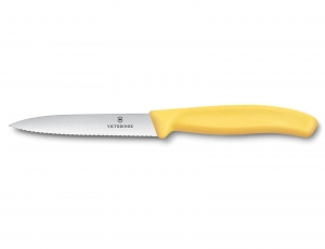 Ετοιμάστε γεύματα σαν επαγγελματίας με αυτό το μαχαίρι. Διαθέτει επαγγελματική κοφτερή λεπίδα από ανοξείδωτο ατσάλι με κυματιστή άκρη και μυτερή άκρη, ιδανική για ένα ευρύ φάσμα ακριβών εργασιών προετοιμασίας. Η ελαφριά, εργονομική λαβή του έχει σχεδιαστεί για να παρέχει βέλτιστη άνεση και έλεγχο. Κατασκευασμένο στην Ελβετία και κατάλληλο για πλυντήριο πιάτων, προσφέρει αξιοπιστία και αποτελεσματικότητα για καθημερινή χρήση στην κουζίνα.
