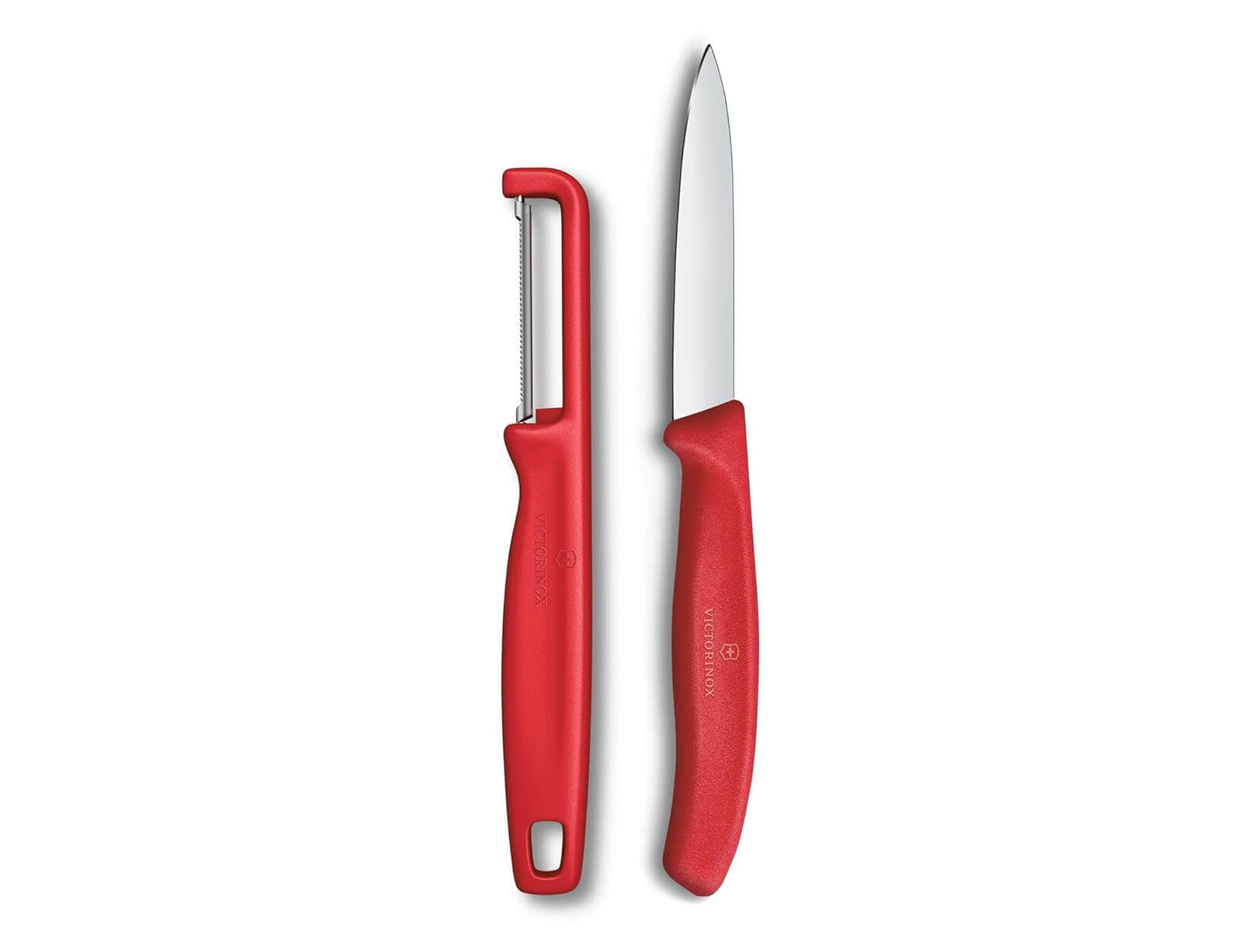 Σετ Μαχαίρια Γενικής Χρήσης & Αποφλοιωτής Victorinox Swiss Classic με μήκος λεπίδας 8cm - Red - 2 τεμάχια