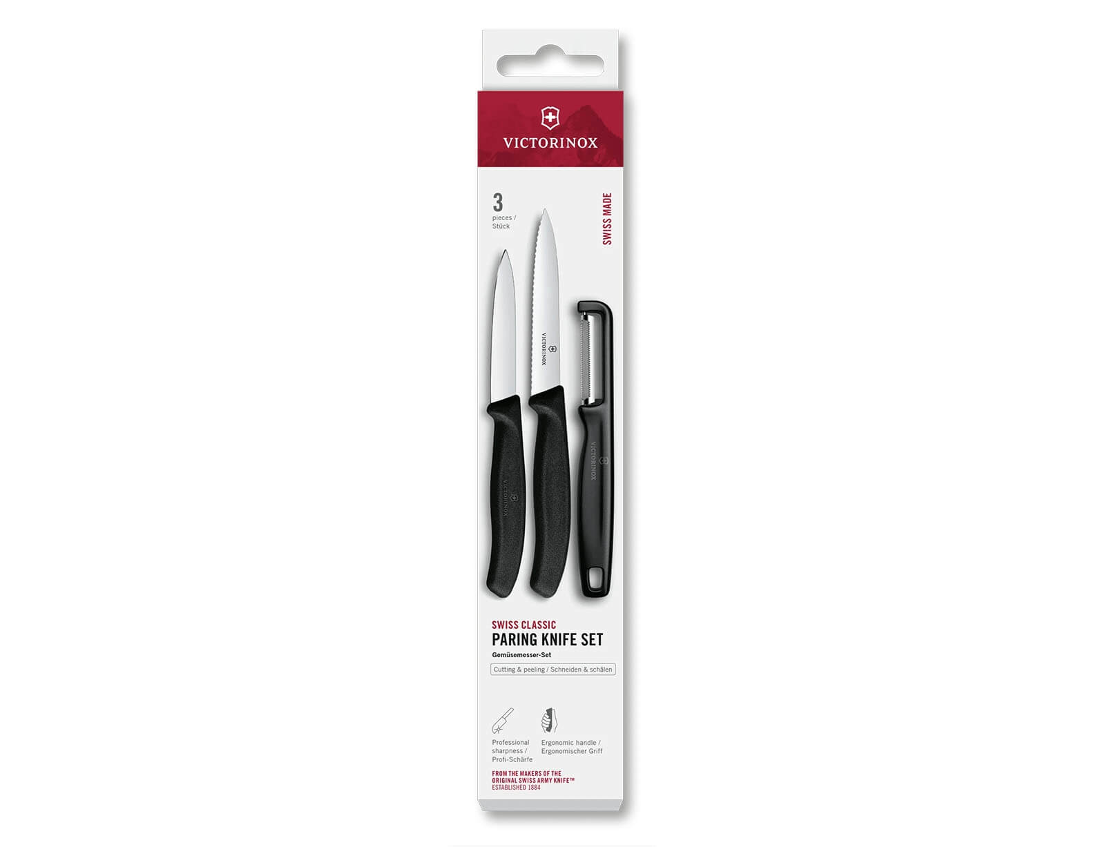 Σετ Μαχαίρια Γενικής Χρήσης & Αποφλοιωτής Victorinox Swiss Classic με μήκος λεπίδας 8cm και 10cm - Black - 3 τεμάχια