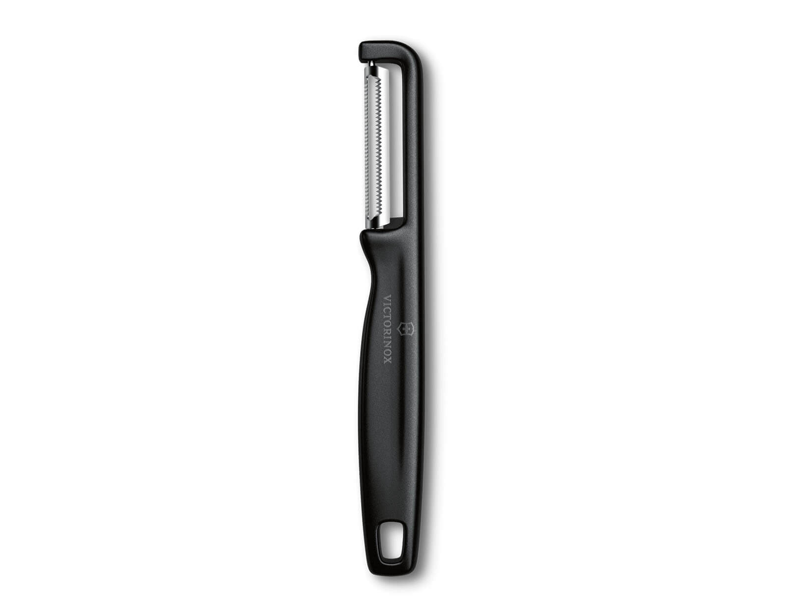 Στη Victorinox, η λειτουργικότητα συναντά τον διαχρονικό σχεδιασμό. Το Iota Peeler είναι κατασκευασμένο από στιβαρό πολυπροπυλένιο και εργονομικά σχεδιασμένο για να ταιριάζει και στα δύο χέρια. Αυτή η έκδοση του Iota είναι εξοπλισμένη με οδοντωτή λεπίδα, ιδανική για να ξεφλουδίζετε εύκολα.