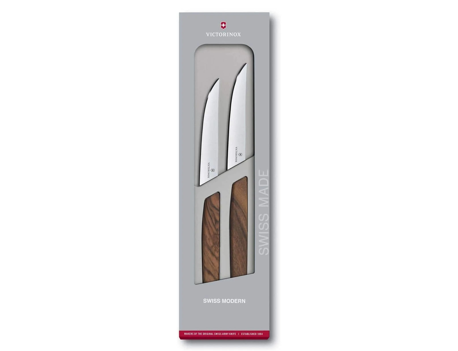 Σετ Μαχαίρια Μπριζόλας Victorinox Swiss Modern με ξύλινη λαβή και μήκος λεπίδας 12cm - 2 τεμάχια - Σε ειδική συσκευασία δώρου