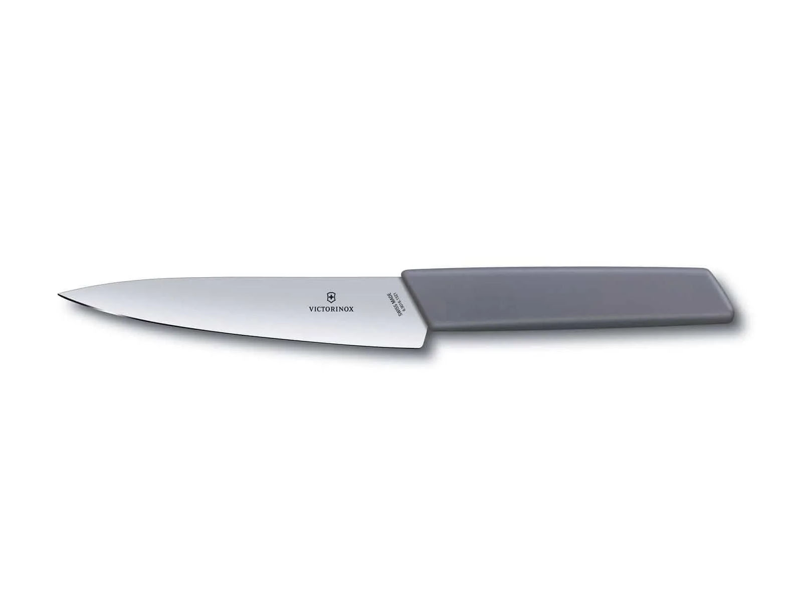 Η σειρά Swiss Modern της Victorinox αποτελεί τον συνδυασμό του στυλ & της αποστελεσματικότητας. Κάθε προϊόν της σειράς αποτελείται από ανθεκτικό στη φθορά ανοξείδωτο ατσάλι και συνδυάζεται με μια πλούσια σε ίνες, μοναδική λαβή από ξύλο ευρωπαϊκής καρυδιάς. Η Swiss Modern είναι μία σειρά σχεδιασμένη για άνετο μαγείρεμα, γεγονός που την κάνει να αποτελεί μία απο τις καλύτερες σειρές για τον ερασιτέχνη μάγειρα που θέλει το καλύτερο για το μαγείρεμα στο σπίτι!