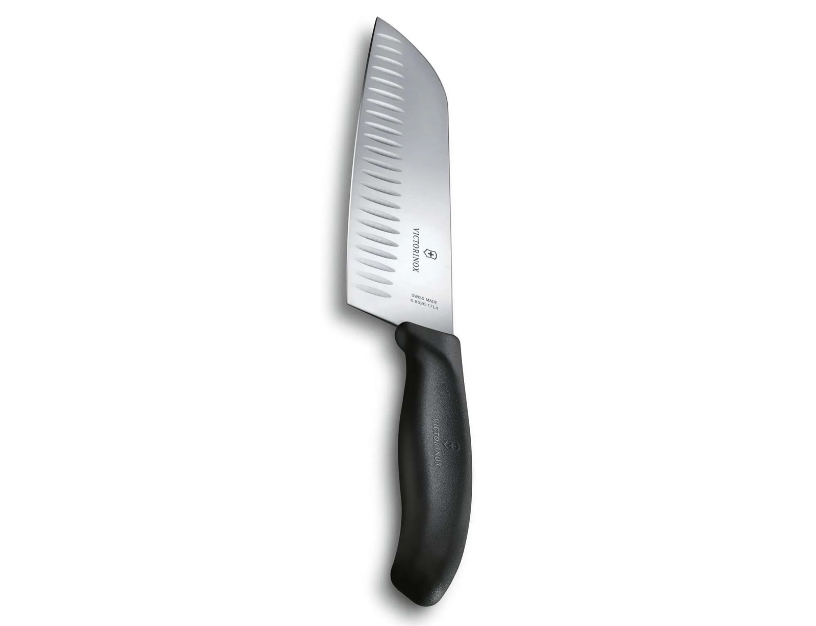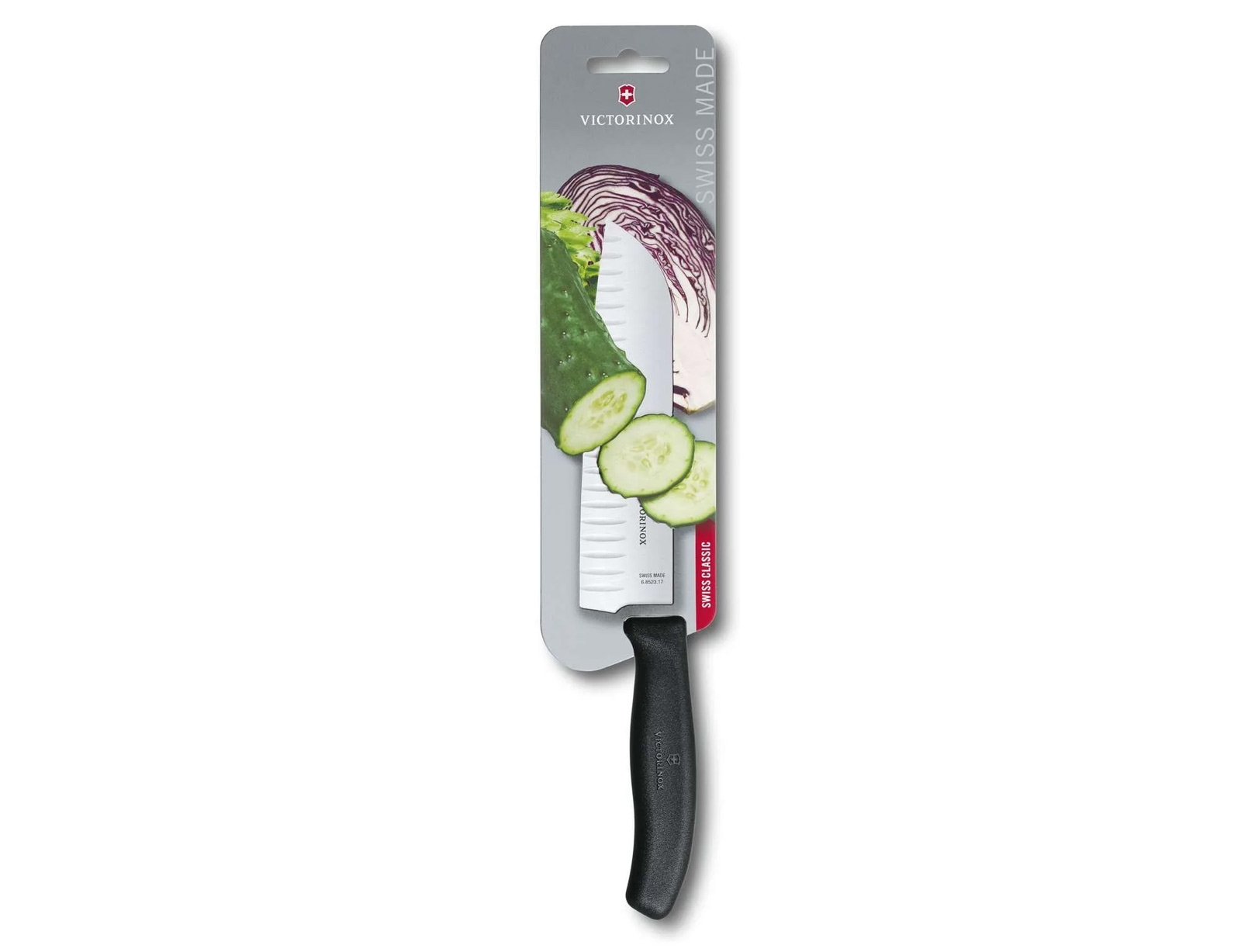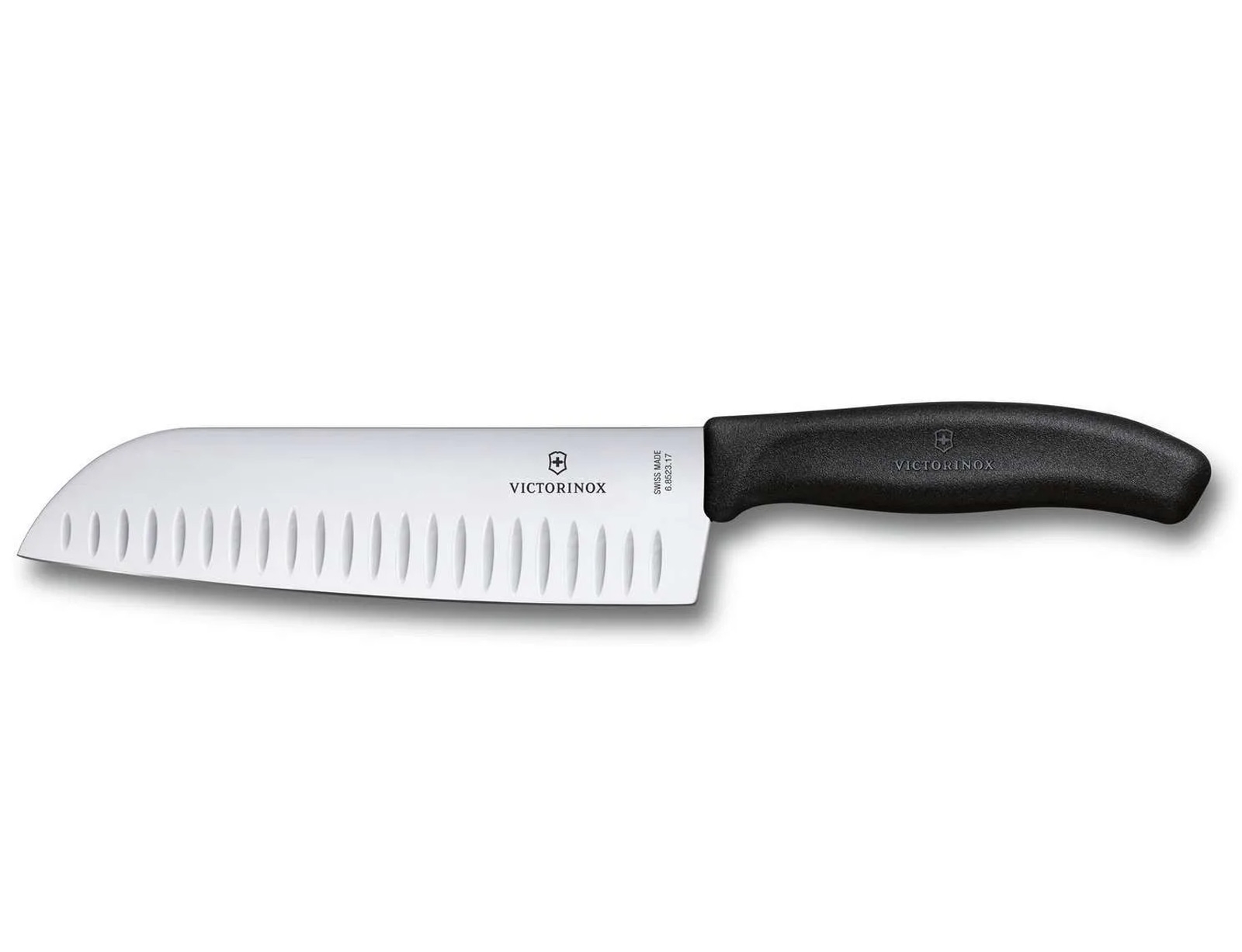 Μαχαίρι Santoku Victorinox Swiss Classic με αυλακώσεις με μαύρη λαβή και μήκος λεπίδας 17cm