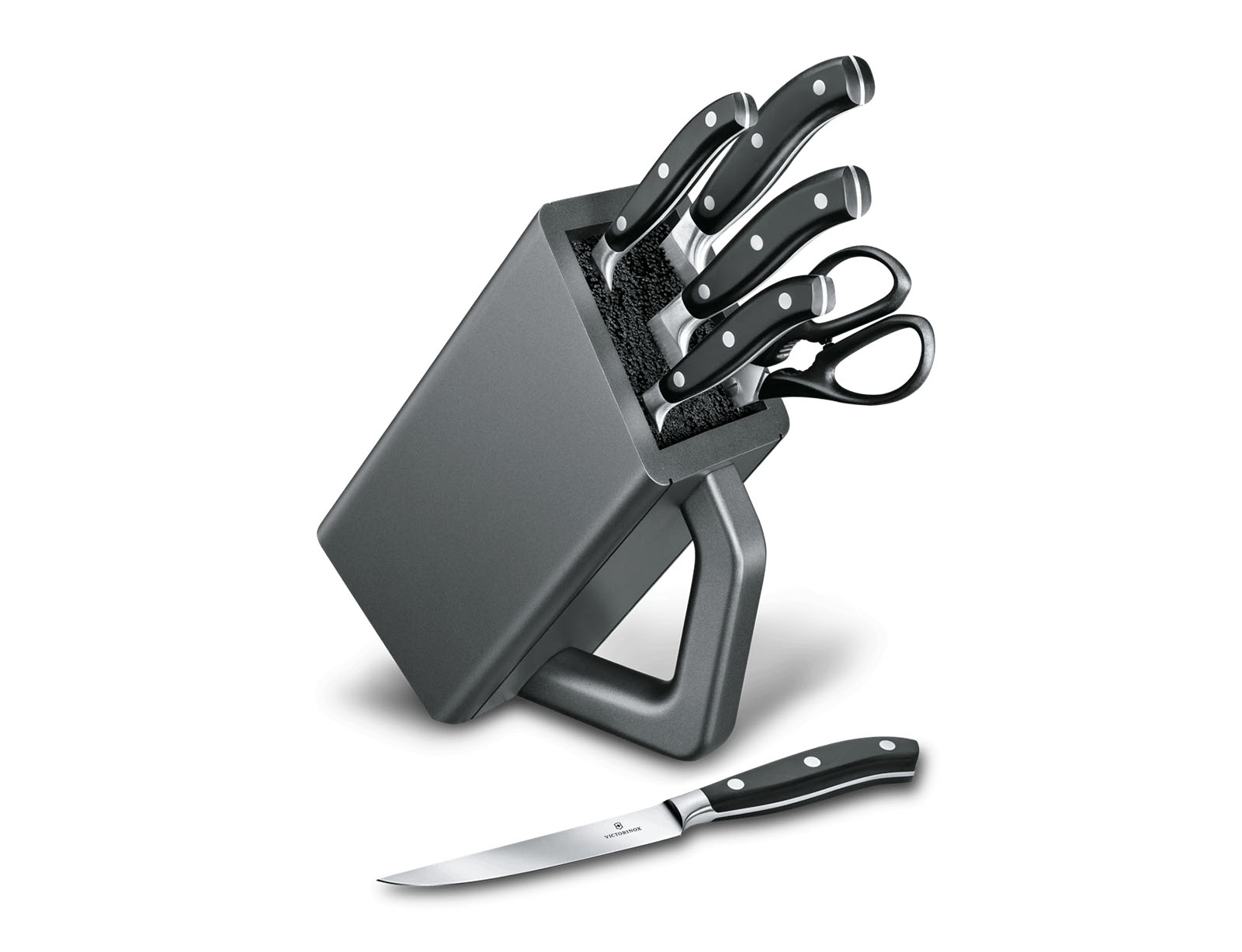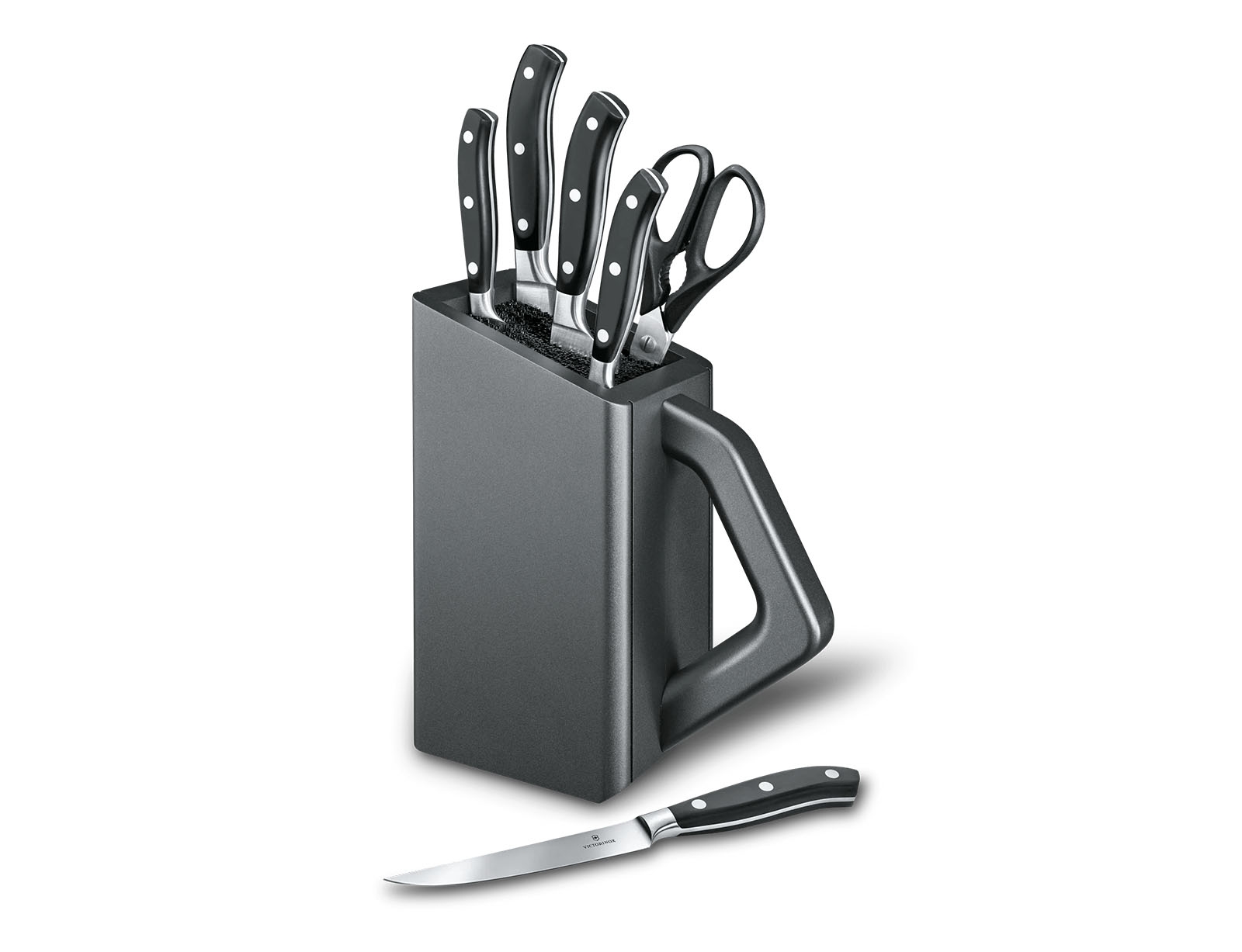 Στο πλαίσιο αυτής της σειράς, τα πέντε μαχαίρια στη βάση Grand Maître μοιράζονται όλα τα ίδια βασικά χαρακτηριστικά. Αποτελούμενο από ένα μαχαίρι κουζίνας, ένα μαχαίρι μπριζόλας, ένα μαχαίρι κοπής, ένα μαχαίρι Santoku και ένα μαχαίρι σεφ, αυτό το σετ περιλαμβάνει επίσης ψαλίδι κουζίνας πολλαπλών χρήσεων, με αποτέλεσμα ένα μπλοκ που καλύπτει τις ανάγκες όλων των εξειδικευμένων εργασιών κουζίνας εκτός από τις πιο εξειδικευμένες.