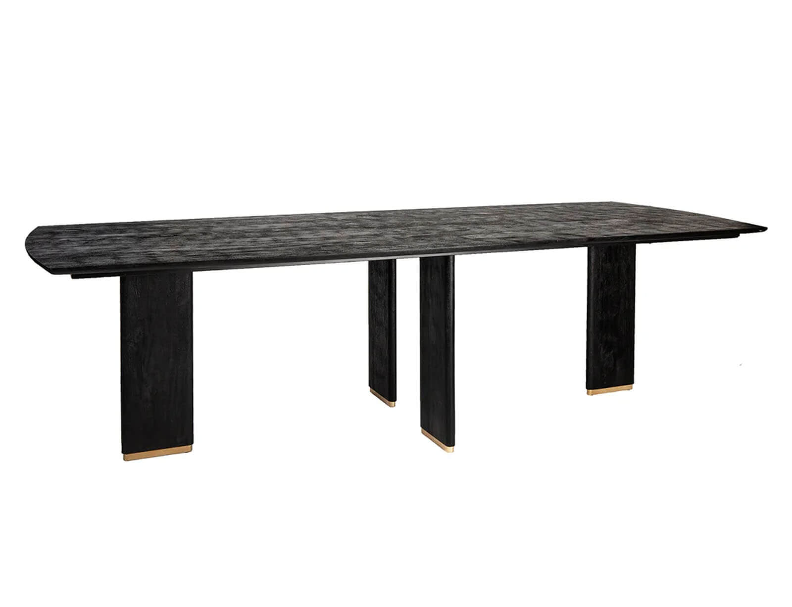 Ζήστε την απόλυτη πολυτέλεια σε μεγάλη κλίμακα με το τραπέζι τραπεζαρίας Liber. Ένα επιβλητικό έπιπλο που συνδυάζει το βαθύ μαύρο ξύλο μάνγκο με διακριτικές χρυσές λεπτομέρειες, δημιουργώντας μια τολμηρή και σύγχρονη αισθητική. Μια εκλεπτυσμένη επιλογή για μεγάλους χώρους και για διακόσμηση που δεν φοβάται να ξεχωρίσει. Η στιβαρή κατασκευή από ξύλο μάνγκο και τα μεταλλικά πόδια εξασφαλίζουν ανθεκτικότητα και σταθερότητα, ενώ ο μοναδικός σχεδιασμός του αναβαθμίζει κάθε εσωτερικό χώρο.