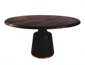 Τραπεζαρία Arca Rib PTMD Luxury Living από Ξύλο Mango, με διαστάσεις 150x150x77cm - Brown, Gold - Δεν περιλαμβάνονται οι καρέκλες