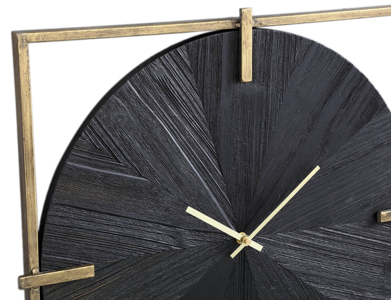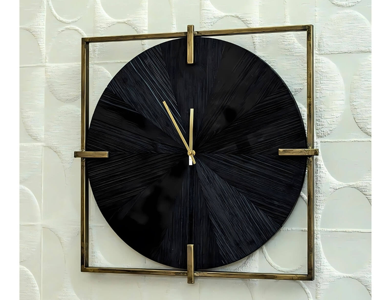 Το ρολόι τοίχου της σειράς Oxxo από την PTMD συνδυάζει μοναδικά ένα τετράγωνο πλαίσιο σε χρυσή απόχρωση με ένα στρογγυλό μαύρο καντράν με επίστρωση καπλαμά, δημιουργώντας μια σύγχρονη και κομψή αισθητική. Με διάμετρο 53 cm, αποτελεί μια εντυπωσιακή προσθήκη σε κάθε τοίχο, λειτουργώντας τόσο ως πρακτικό αντικείμενο όσο και ως διακοσμητικό στοιχείο. Λειτουργεί με μία μπαταρία AA (δεν περιλαμβάνεται) και ταιριάζει ιδανικά τόσο σε μοντέρνους όσο και σε διαχρονικούς χώρους, προσφέροντας στυλ και χαρακτήρα σε κάθε εσωτερικό περιβάλλον.