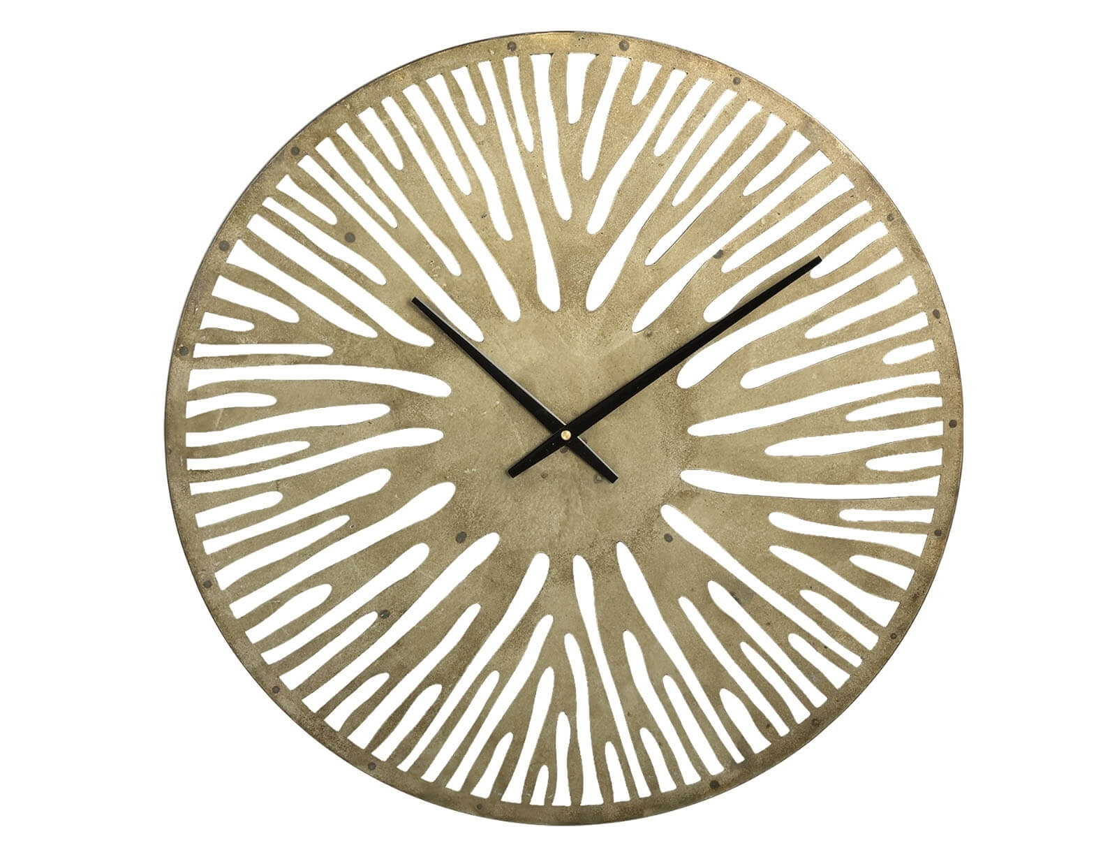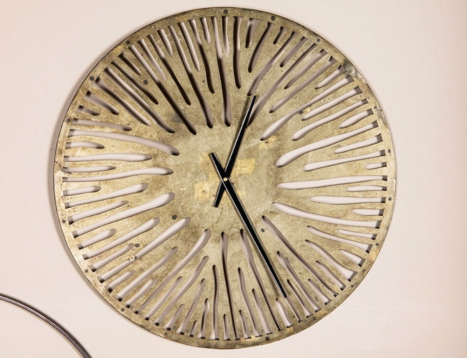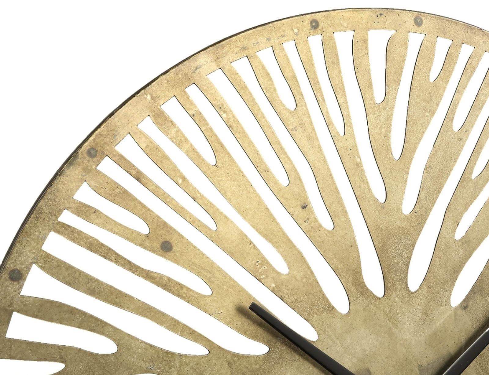 Το ρολόι τοίχου Derandi της PTMD αποτελεί μια κομψή και εντυπωσιακή προσθήκη για κάθε εσωτερικό χώρο. Διαθέτει ανοιχτό σχεδιασμό και είναι κατασκευασμένο από μέταλλο με χρυσό φινίρισμα σε αντικέ στιλ, που του χαρίζει μια διαχρονική και εκλεπτυσμένη εμφάνιση. Με τη γενναιόδωρη διάμετρο των 59 cm, τραβά αμέσως τα βλέμματα και αναδεικνύεται σε πραγματικό διακοσμητικό στοιχείο στον τοίχο σας. Λειτουργεί με μία μπαταρία AA (δεν περιλαμβάνεται) και συνδυάζει άψογα το κομψό design με την πρακτικότητα, προσφέροντας στυλ και λειτουργικότητα σε κάθε χώρο.