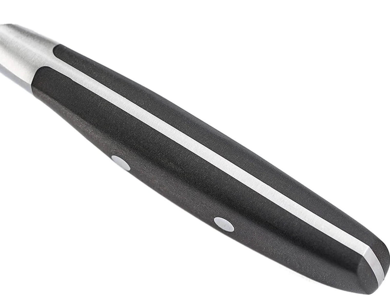 Το μαχαίρι ψωμιού αποτελεί ένα απαραίτητο εργαλείο για κάθε κουζίνα που απαιτεί ακρίβεια, σταθερότητα και άψογο κόψιμο. Η κυματιστή, οδοντωτή του λεπίδα κόβει με ευκολία κάθε είδος ψωμιού—από αφράτες μπαγκέτες μέχρι πυκνές, χωριάτικες φρατζόλες—χωρίς να πιέζει ή να θρυμματίζει τη σάρκα του ψωμιού. Κατασκευασμένο από υψηλής ποιότητας ανοξείδωτο ατσάλι, διατηρεί εξαιρετική αντοχή και αιχμηρότητα με την πάροδο του χρόνου. Η εργονομική λαβή του προσφέρει σταθερό και άνετο κράτημα, επιτρέποντας απόλυτο έλεγχο σε κάθε κίνηση, είτε σε επαγγελματικό είτε σε οικιακό περιβάλλον.