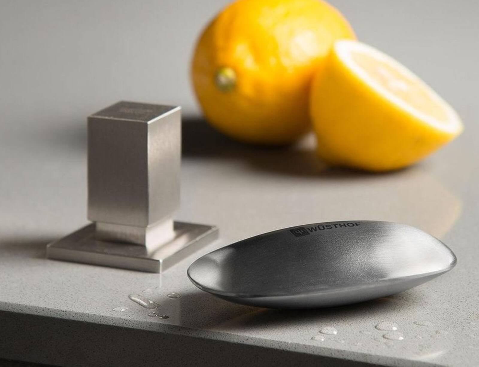 Από τους ανθρώπους της Wusthof, έρχεται ένας μοναδικός και αποτελεσματικός τρόπος για την καταπολέμηση των βακτηρίων και των οσμών. Το σαπούνι από ανοξείδωτο ατσάλι λειτουργεί ως καταλύτης, ο οποίος μετατρέπει τα μόρια της οσμής σε ουδέτερες ενώσεις οξυγόνου. Ακόμα και οι επίμονες οσμές, όπως αυτή του ντίζελ, θα εξαφανιστούν. Σε αντίθεση με τα συνηθισμένα απορρυπαντικά, η μυρωδιά δεν επικαλύπτεται από ένα άλλο άρωμα, αλλά εξουδετερώνεται χάρη στην αλληλεπίδραση του σαπουνιού από ανοξείδωτο ατσάλι με το νερό και τον αέρα. Μόλις πλυθούν με το σαπούνι από ανοξείδωτο ατσάλι για περίπου 30 δευτερόλεπτα κάτω από τρεχούμενο νερό, τα χέρια σας θα είναι φρέσκα και απαλλαγμένα από οσμές. Το σαπούνι δεν φθείρεται και λειτουργεί χωρίς τη χρήση χημικών προσθέτων.