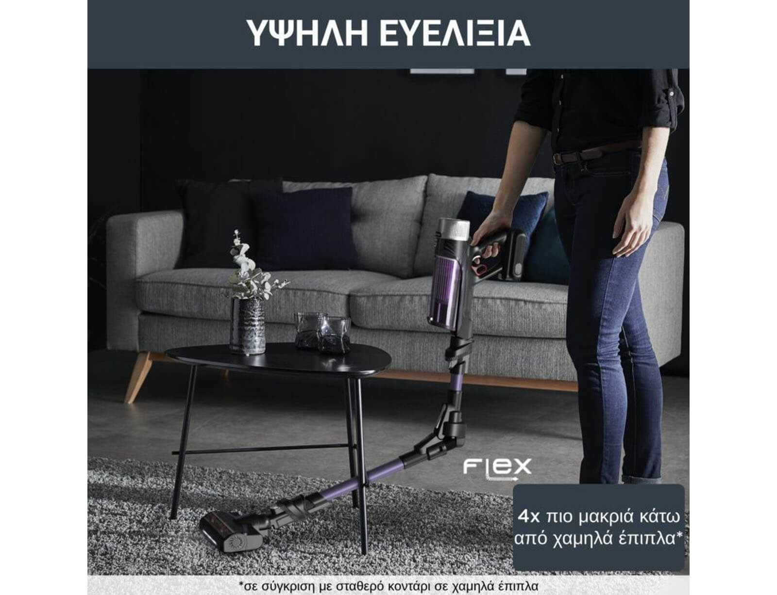 Η ασύρματη ηλεκτρική σκούπα Rowenta RH2039WO X-Force Flex 9.60 προσφέρει την τέλεια ισορροπία απόδοσης και άνεσης. Ανακαλύψτε την ισχυρή, σταθερή αναρρόφηση έως και 100 airwatt για μέγιστη απόδοση ανά πάσα στιγμή, όλα σε έναν εξαιρετικά συμπαγή και ελαφρύ σχεδιασμό, με βάρος μόλις 1,1 kg σε λειτουργία χειρός. Τα αποτελέσματα μακράς διαρκείας είναι εγγυημένα χάρη στο φιλτράρισμα 99,9%, τον έξυπνο καθαρισμό με αυτόματη ρύθμιση αναρρόφησης βάσει του τύπου δαπέδου, την τεχνολογία Flex για άνετο καθάρισμα χωρίς σκύψιμο, την εντυπωσιακή διάρκεια ζωής μπαταρίας 45 λεπτών και πολλά άλλα. Απολαύστε καθαρισμό χωρίς κόπο από το δάπεδο μέχρι την οροφή.