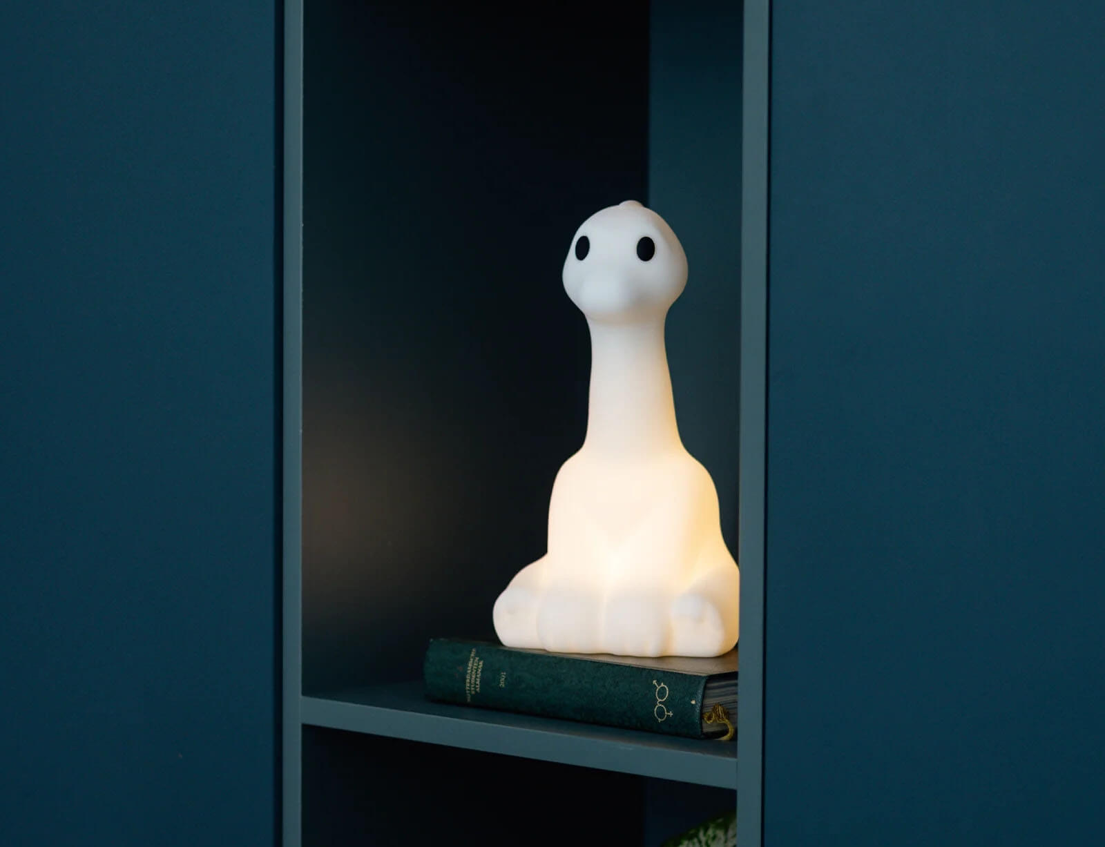 Φωτίστε τα όνειρα του μικρού σας φίλου με έναν φιλικό δεινόσαυρο! Το απαλό, ζεστό φως του και ο γαλήνιος σχεδιασμός του δημιουργούν μια ζεστή και χαλαρωτική ατμόσφαιρα για την ώρα του ύπνου. Το φωτιστικό είναι κατασκευασμένο από μαλακή, ασφαλή για παιδιά σιλικόνη, που προσφέρει ευχάριστη υφή και προστατεύει το προϊόν από πιθανά χτυπήματα ή πτώσεις. Όταν ανάβει, ολόκληρη η φιγούρα φωτίζεται με ένα όμορφο, ομοιόμορφο φως.