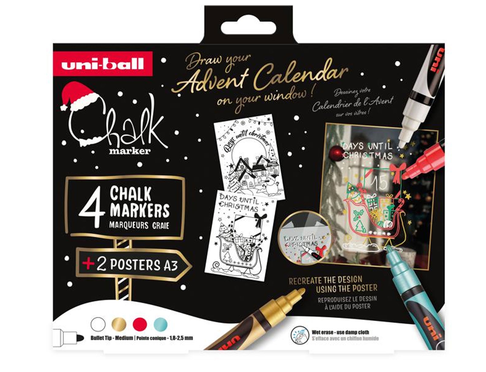 Μαρκαδόροι υγρής κιμωλίας Uni-Ball με πάχος μύτης 1,8 - 2,5 mm - 4 τεμάχια