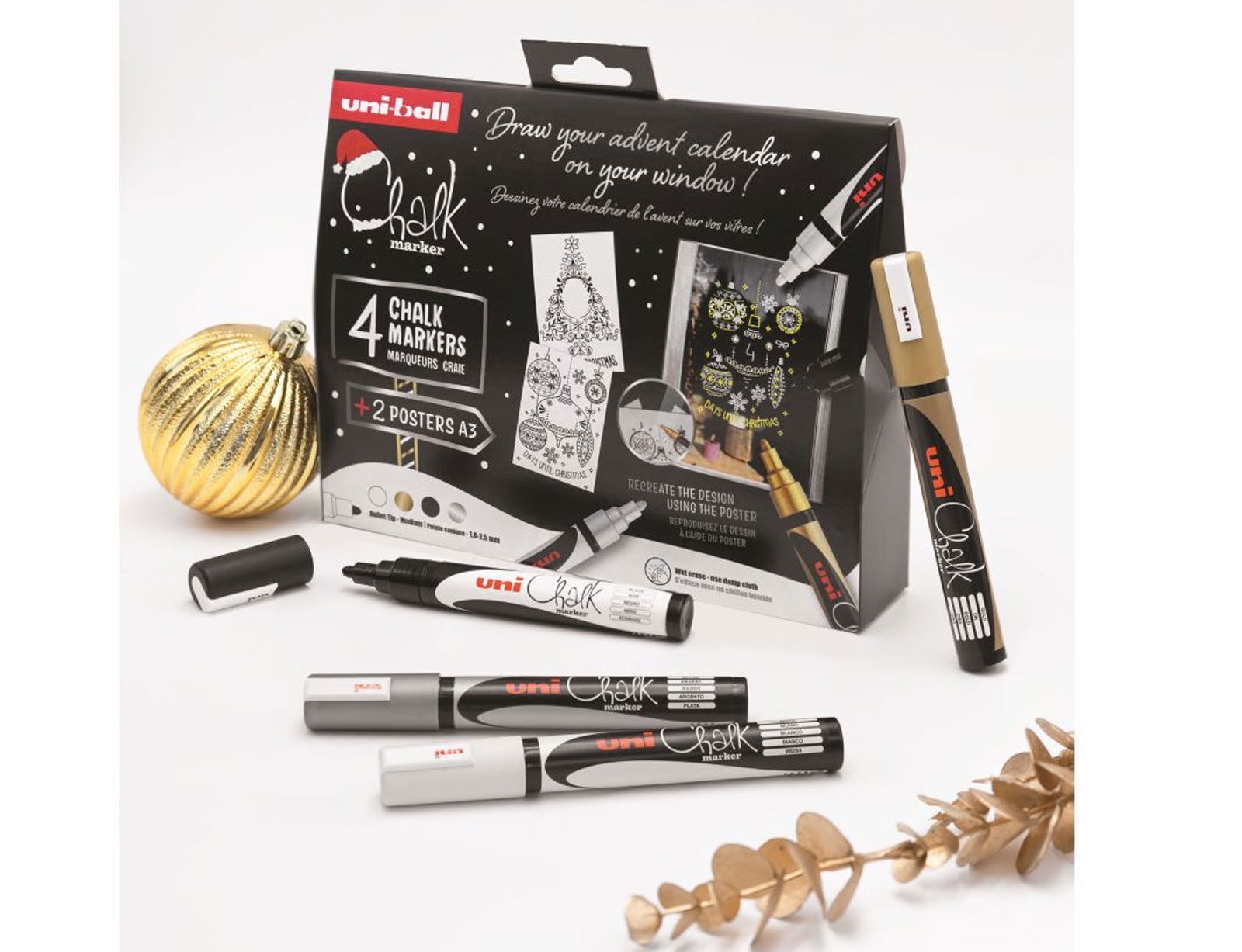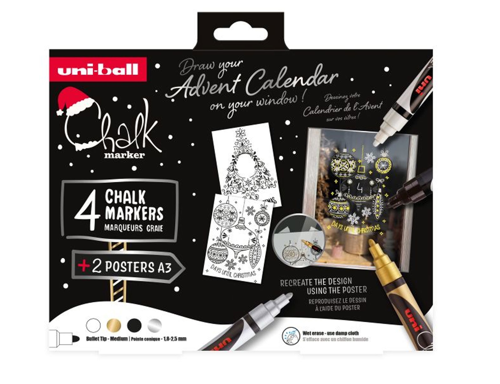 Μαρκαδόροι υγρής κιμωλίας Uni-Ball με πάχος μύτης 1,8 - 2,5 mm - 4 τεμάχια