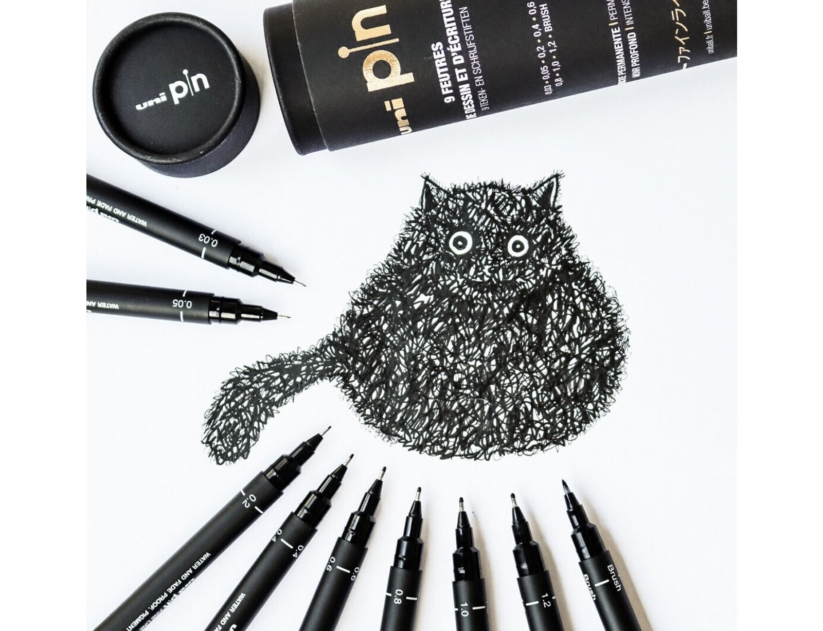 Μαρκαδόροι Σχεδίου Uni PIN Tube Finerliner με πάχος μυτών 0.03/0.05/0.2/0.4/0.6/0.8/1.0/1.2mm - 9 τεμάχια