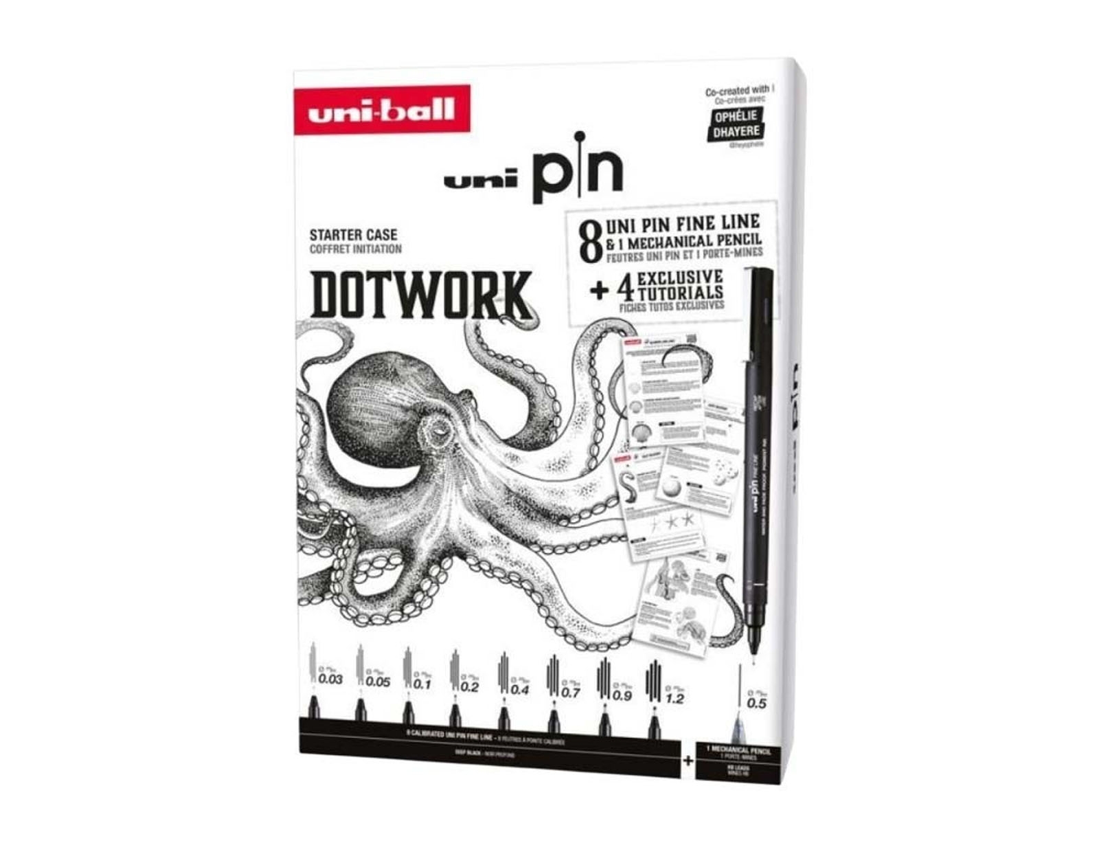 Μαρκαδόροι Σχεδίου Uni PIN Dotwork με πάχος μυτών 0.03/0.05mm/0.1mm/0.2mm/0.4mm/0.7mm/0.9mm/1.2mm/0.5 HB- 9 τεμάχια