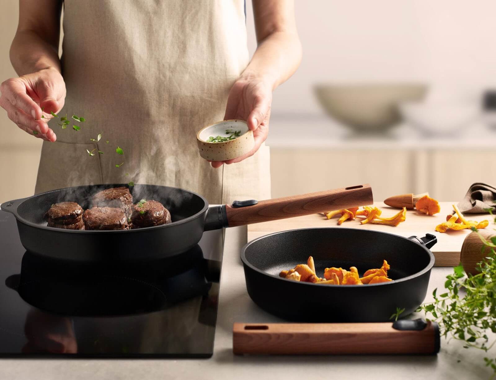 Τα μαγειρικά σκεύη της σειράς είναι ασύγκριτα ανθεκτικά, με πρακτικό, εργονομικό σχεδιασμό και εύκολα αποσπώμενη λαβή. Η Eco Logic είναι η πρωτοποριακή συλλογή, όπου στο σχεδιαστικό κομμάτι προστίθενται ξύλινες λαβές από οξιά ευρωπαϊκών δασών που φέρουν πιστοποίηση FSC®. Οι λαβές υφίστανται θερμική επεξεργασία στους 190 βαθμούς, προσδίδοντας μια ιδιαίτερα εκλεπτυσμένη εμφάνιση. Φυσικά ακόμη και η συσκευασία είναι τόσο καλά μελετημένη όσο και το περιεχόμενό της - ένα κουτί από 100% ανακυκλωμένο χαρτόνι, τυπωμένο με οικολογικό μελάνι.