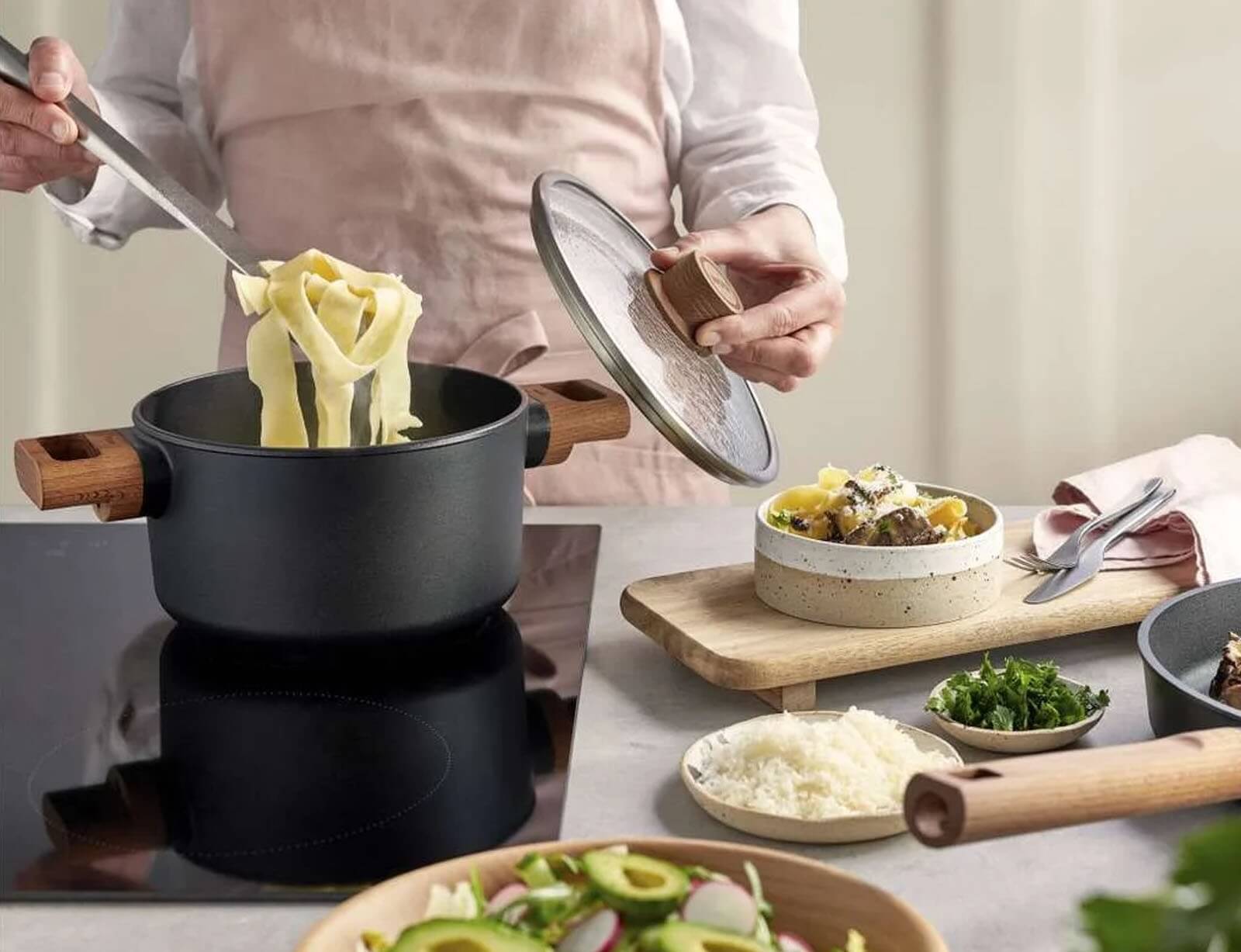 To επαγγελματικής ποιότητας χυτό αλουμίνιο επιτυγχάνει ταχεία θέρμανση του σκεύους φτάνοντας ακόμα και 300 °C σε μόλις 3 λεπτά, και εγγυάται την ομοιόμορφη κατανομή της θερμότητας αλλά και τη διατήρησή της, επιτρέποντάς σας να κρατάτε τη θερμοκρασία της εστίας σας σε χαμηλά επίπεδα και συνεπώς να έχετε εξοικονόμηση ενέργειας. Επίσης η εξαιρετικά συμπαγής βάση που διαθέτουν τα σκεύη της Woll επιτρέπει στο φαγητό σας να παραμένει ζεστό ακόμα και όταν απενεργοποιήσετε τις εστίες της κουζίνας σας.