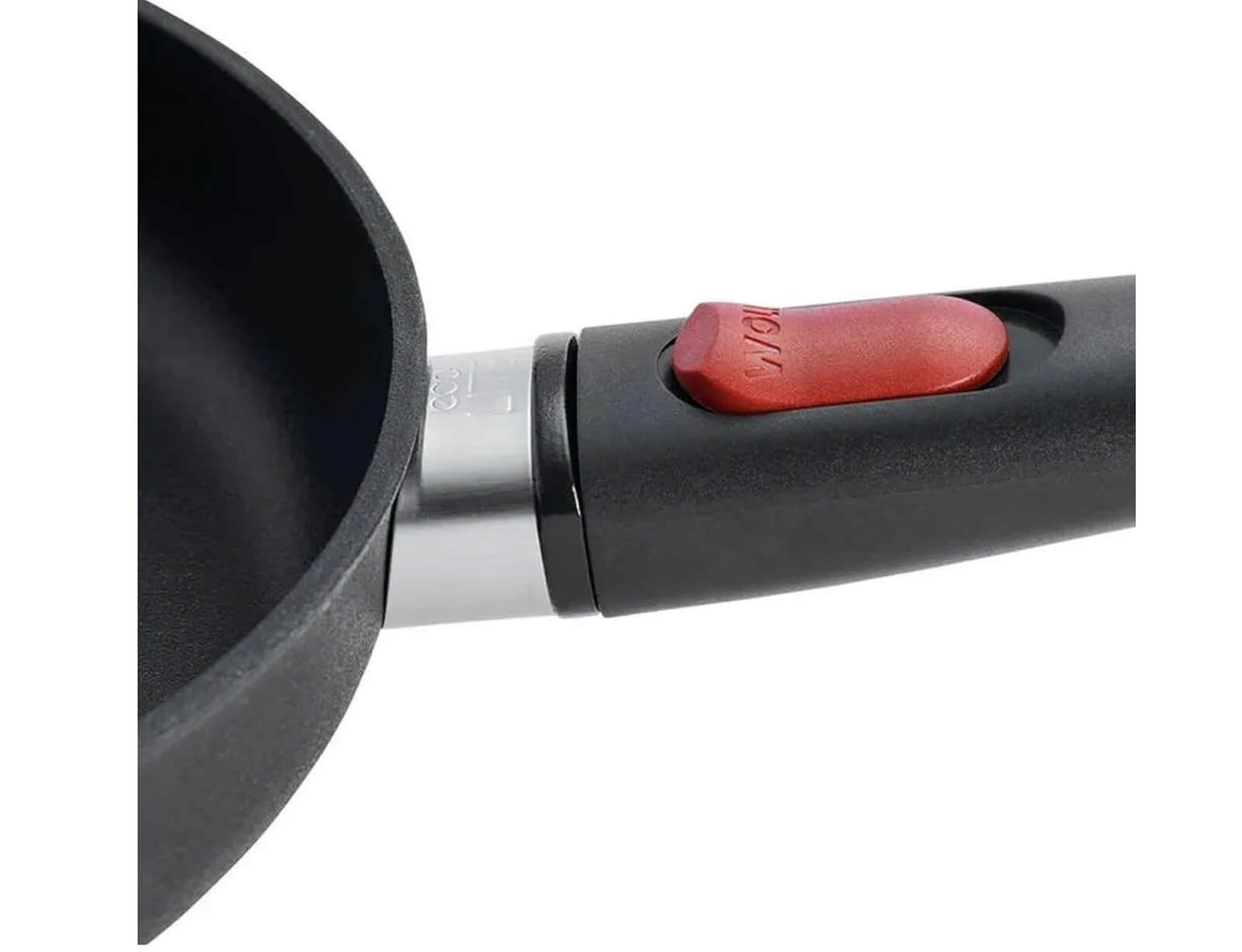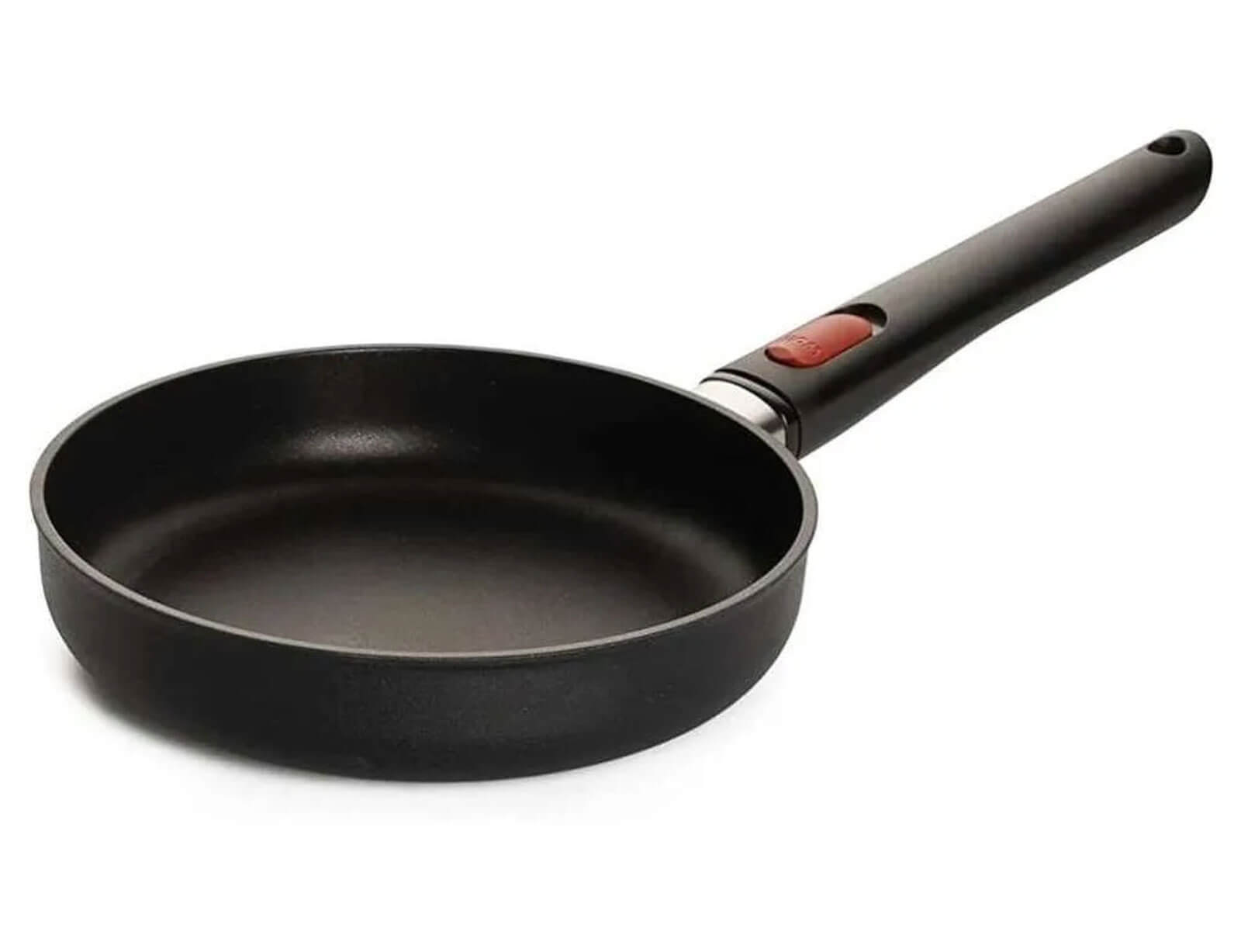 Οι εργονομικές αφαιρούμενες λαβές σας διευκολύνουν και είναι βολικές και ασφαλείς, σας επιτρέπουν αφαιρώντας τις να βάλετε το σκεύος στο φούρνο. Άνετο κράτημα, ανθεκτικότητα και αξιοπιστία με την υπογραφή της Woll. Ένα τηγάνι χωρίς λαβή ταιριάζει στο φούρνο, βολεύει στο νεροχύτη, στο πλυντήριο πιάτων και είναι εύκολο να χωρέσει και να στοιβαχτεί σχεδόν σε οποιοδήποτε ντουλάπι της κουζίνας. Ένα τηγάνι χωρίς λαβή είναι επίσης μια ασφαλέστερη επιλογή όταν μικρά παιδιά κινούνται γύρω από την περιοχή των εστιών.