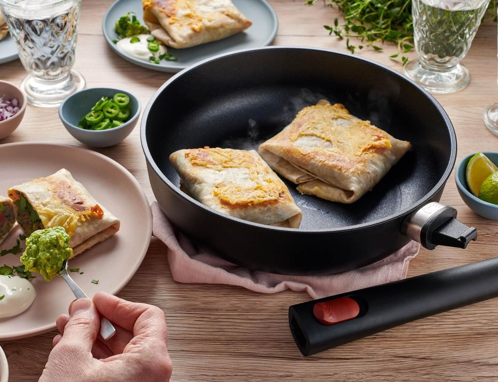 Η νέα πρωτοποριακή επιφάνεια QXR χωρίς PFAS, χρησιμοποιεί 30% λιγότερη ενέργεια κατά την παραγωγή, κατασκευάζεται από φυσικό χαλαζία και προσφέρει μια αξιοσημείωτη αντικολλητική απόδοση. Σε συνδυασμό με τους ενσωματωμένους διαμαντένιους κρυστάλλους, η νέα σειρά Eco Lite QXR επιτυγχάνει επιπλέον απαράμιλλη ανθεκτικότητα. Η εξαιρετικά τραχιά επιφάνεια, που υπάρχει αποκλειστικά στα προϊόντα Woll, δημιουργεί αρώματα ψησίματος που κάνουν τα πιάτα σας ακόμα πιο νόστιμα. Άλλωστε, η γεύση πρέπει πάντα να έρχεται πρώτη. Ανθεκτικά σε πολύ υψηλές θερμοκρασίες, με πρακτικό, εργονομικό σχεδιασμό, εύκολα αποσπώμενη λαβή. τα σκεύη Eco Lite έχουν όλα τα πλεονεκτήματα για τα οποία είναι γνωστά τα προϊόντα Woll: εξαιρετική ανθεκτικότητα, μακροζωία και την σκληρή, αντικολλητική επιφάνεια που συναντάτε μόνο στη Woll.