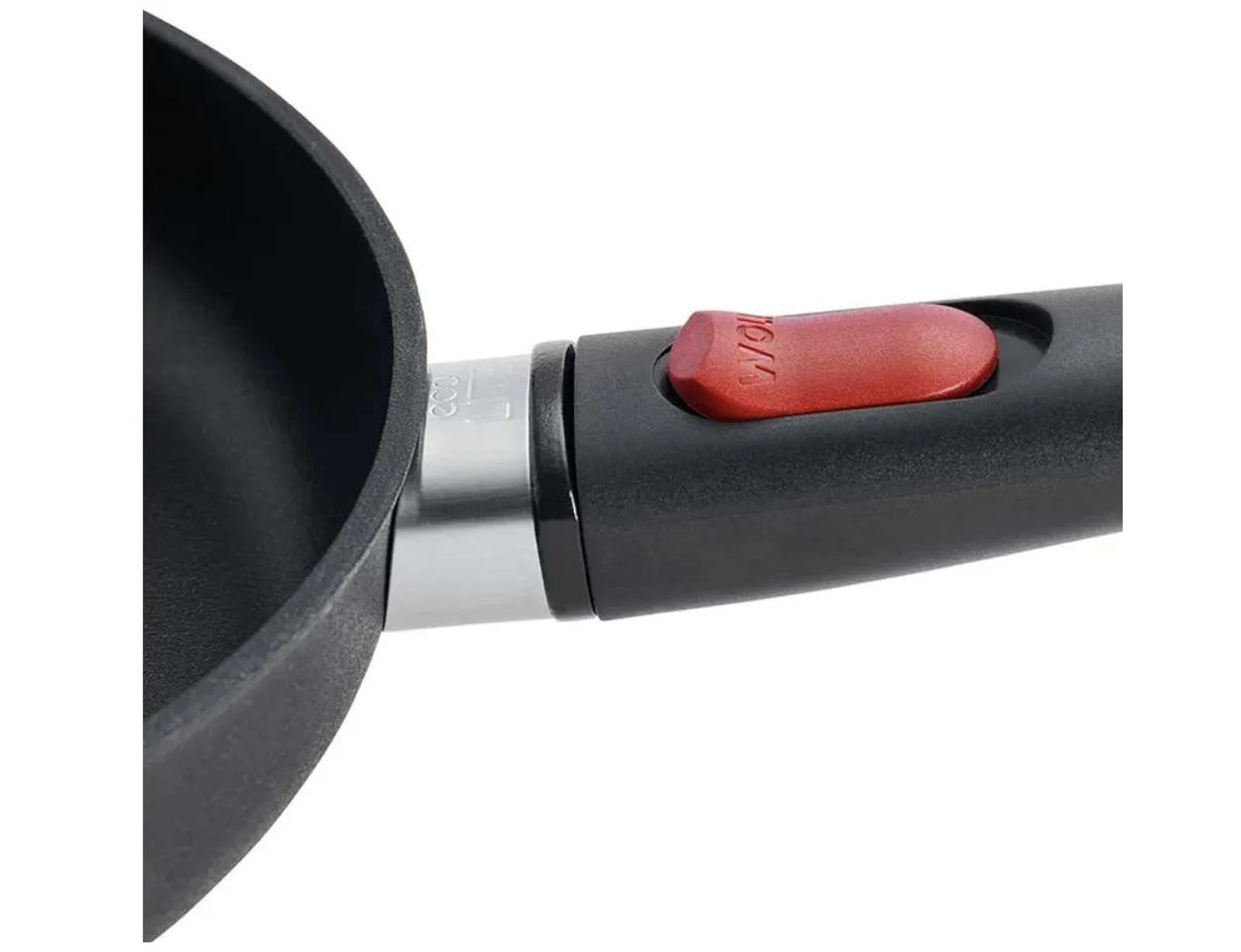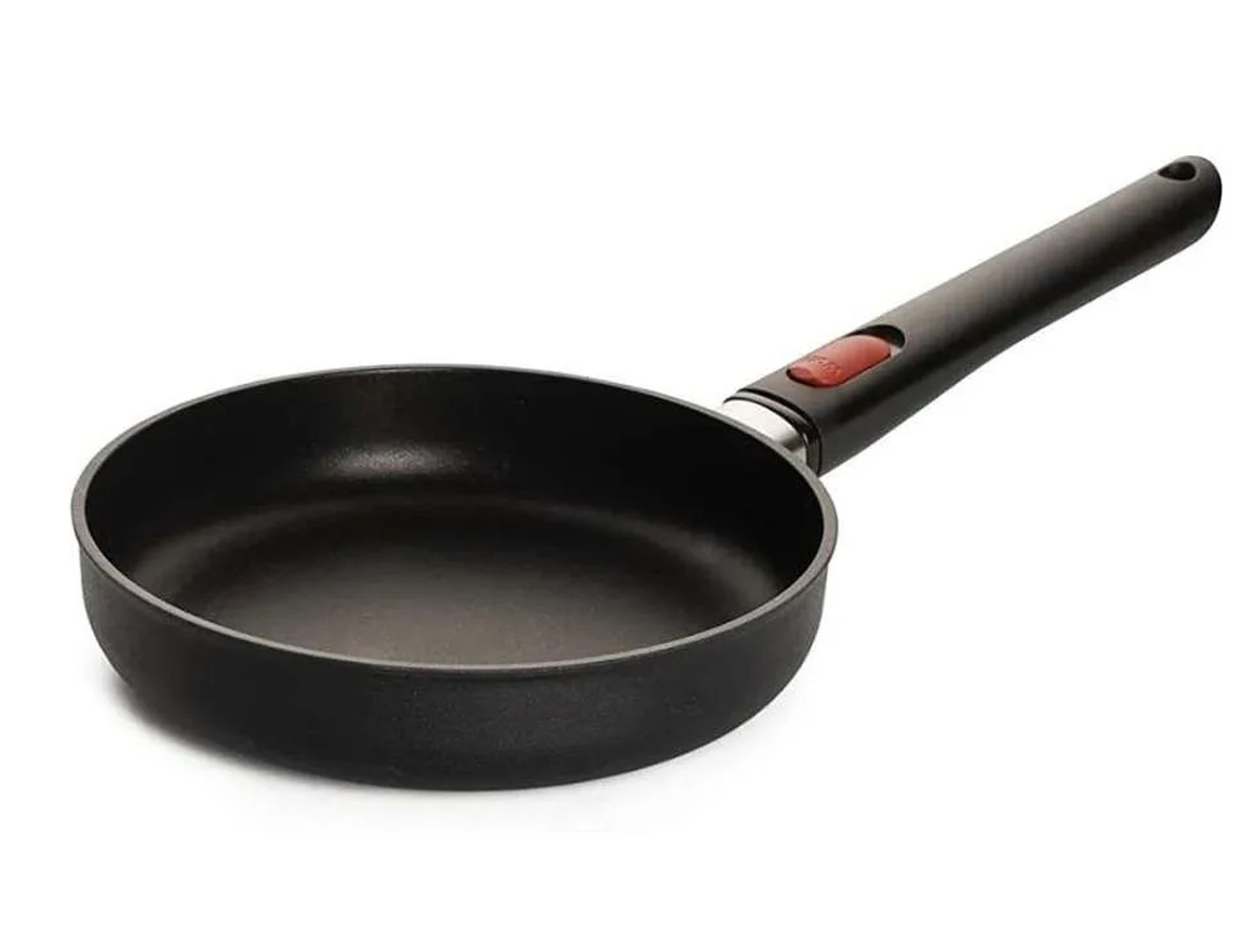 Οι εργονομικές αφαιρούμενες λαβές σας διευκολύνουν και είναι βολικές και ασφαλείς, σας επιτρέπουν αφαιρώντας τις να βάλετε το σκεύος στο φούρνο. Άνετο κράτημα, ανθεκτικότητα και αξιοπιστία με την υπογραφή της Woll. Ένα τηγάνι χωρίς λαβή ταιριάζει στο φούρνο, στο νεροχύτη, στο πλυντήριο πιάτων και είναι εύκολο να χωρέσει και να στοιβαχτεί σχεδόν σε οποιοδήποτε ντουλάπι της κουζίνας. Ένα τηγάνι χωρίς λαβή είναι επίσης μια ασφαλέστερη επιλογή όταν μικρά παιδιά κινούνται γύρω από την περιοχή των εστιών.