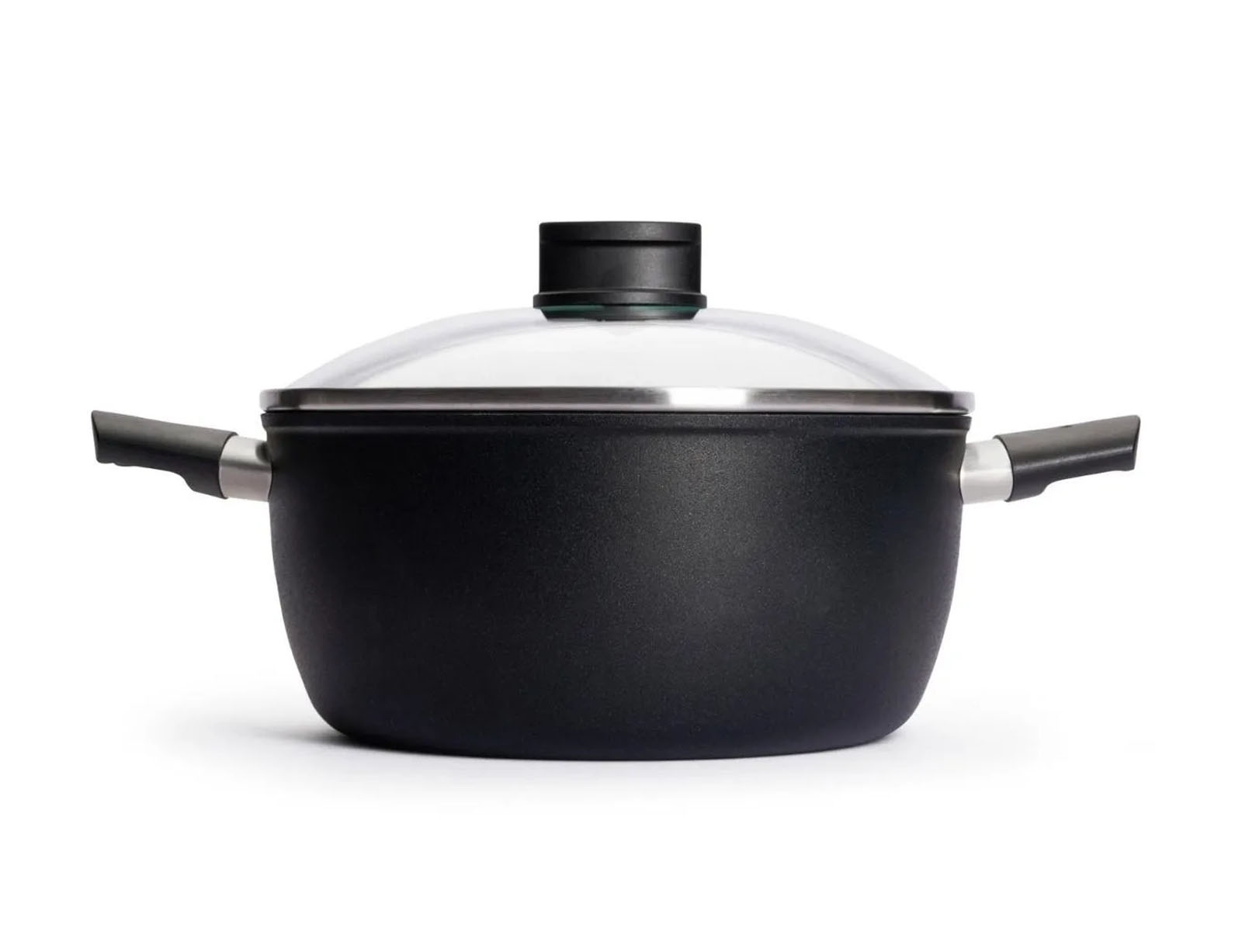To επαγγελματικής ποιότητας χυτό αλουμίνιο επιτυγχάνει ταχεία θέρμανση του σκεύους φτάνοντας ακόμα και 300 °C σε μόλις 3 λεπτά, και εγγυάται την ομοιόμορφη κατανομή της θερμότητας αλλά και τη διατήρησή της, επιτρέποντάς σας να κρατάτε τη θερμοκρασία της εστίας σας σε χαμηλά επίπεδα και συνεπώς να έχετε εξοικονόμηση ενέργειας. Επίσης η εξαιρετικά συμπαγής βάση που διαθέτουν τα σκεύη της Woll επιτρέπει στο φαγητό σας να παραμένει ζεστό ακόμα και όταν απενεργοποιήσετε τις εστίες της κουζίνας σας.