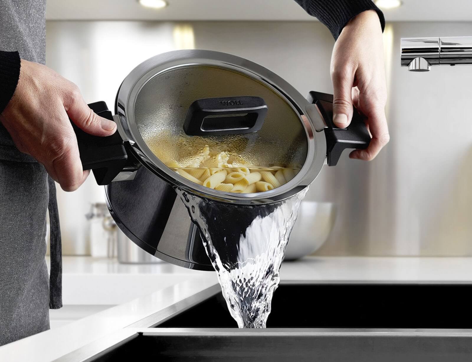 Ανυψωμένη θέση: Τέλεια για μακαρόνια, πατάτες και ρύζι. Επίσης ιδανική για γρήγορο, εύκολο και ασφαλές στράγγισμα.
