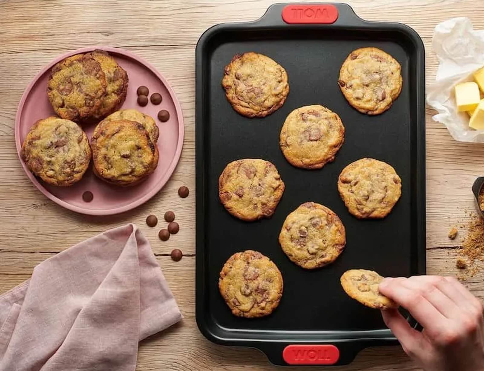 Με το Let's Bake, μπορείτε να ψήσετε υπέροχες τάρτες, muffins, κέικ, μπισκότα ή ψωμιά ενεργειακά αποδοτικά χάρη στην καλύτερη κατανομή θερμότητας. Φυσικά, χωρίς σκληρές χημικές ουσίες. Αντίθετα, διαθέτει βάσεις στεγανές με μηχανισμό γρήγορης απελευθέρωσης και την αποδεδειγμένα ενισχυμένη με αντικολλητική επίστρωση. Οι ενσωματωμένες λαβές σιλικόνης είναι εμπνευσμένες από τα τηγάνια μας και είναι ανθεκτικές στη θερμότητα έως και 230 βαθμούς Κελσίου. Με το Let's Bake, μπορείτε να ψήσετε ό,τι θέλετε.