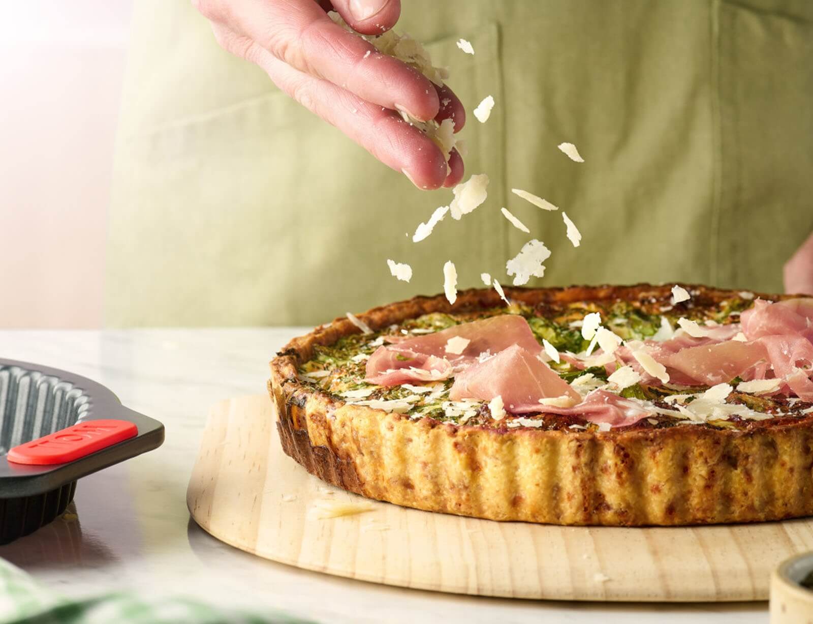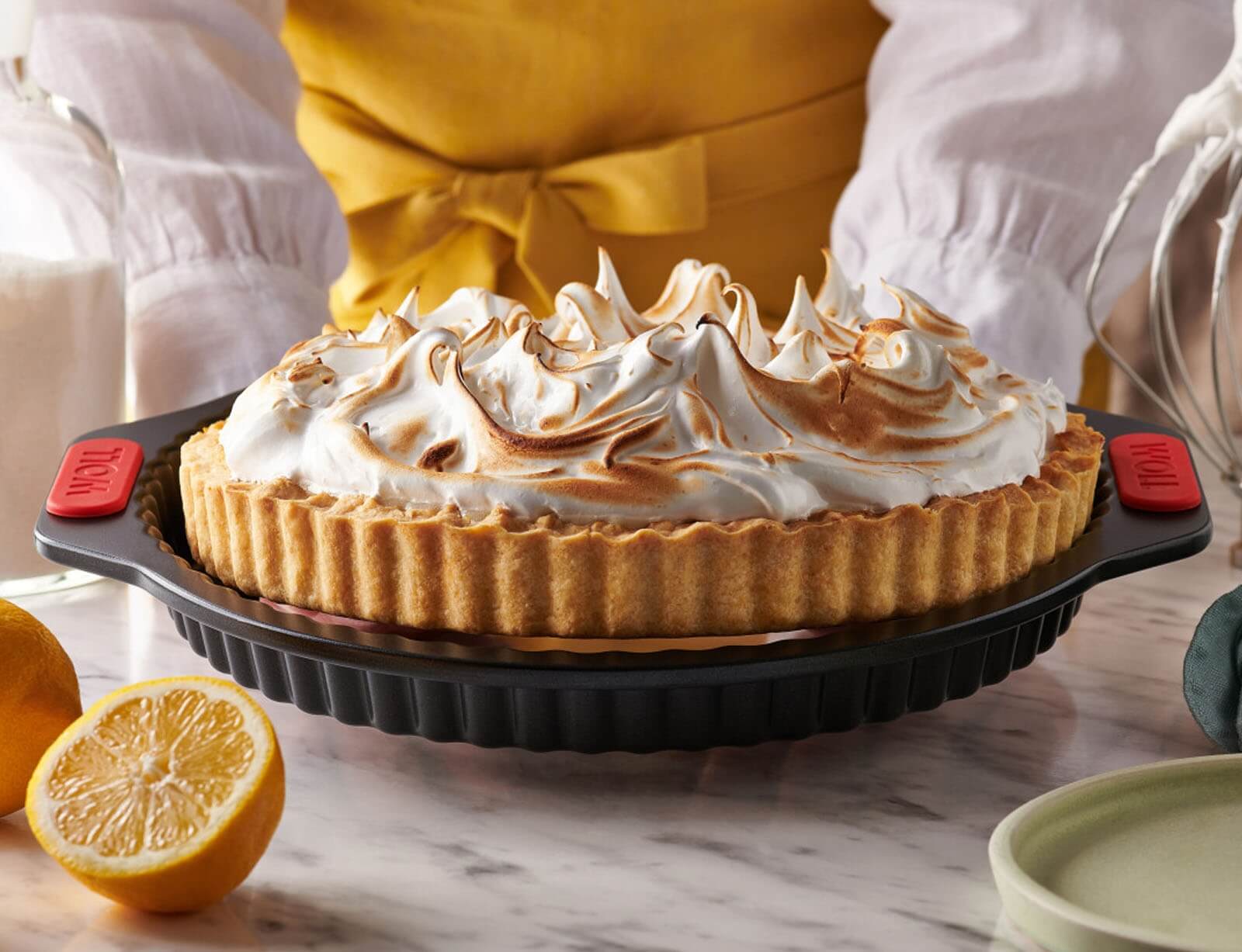 Η φόρμα για κις και τάρτα Let's Bake! θα ανεβάσει την εμπειρία ψησίματος στο επόμενο επίπεδο. Συνδυάζει έξυπνες τεχνολογίες όπως η πρακτική αφαιρούμενη βάση και η αντικολλητική επίστρωση ενισχυμένη με διαμάντια με φιλική προς το περιβάλλον κατασκευή και φιλικό προς το χρήστη χειρισμό. Ο προσεγμένος σχεδιασμός της με ανθεκτικές στη θερμότητα λαβές σιλικόνης εξασφαλίζει μέγιστη άνεση και ασφάλεια.