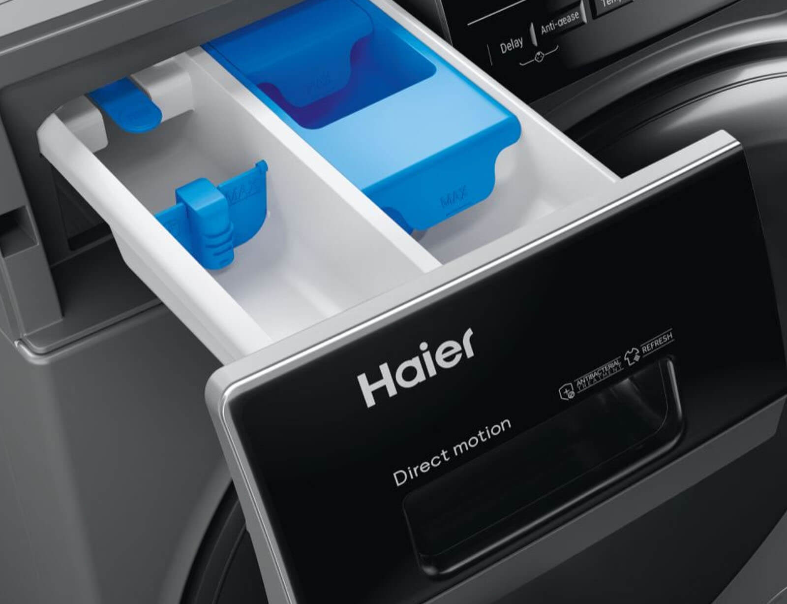 Η αποκλειστική επίστρωση της Haier προστατεύει τις πιο ευαίσθητες περιοχές του πλυντηρίου-στεγνωτηρίου σας. Η αντιβακτηριακή επεξεργασία (ABT®) της Haier προστατεύει από μούχλα και βακτήρια που σχηματίζονται σε περιοχές όπως το συρτάρι απορρυπαντικού και η λαστιχένια στεγανοποίηση της πόρτας φόρτωσης, βελτιώνοντας την υγιεινή του κύκλου πλύσης κατά 99%.