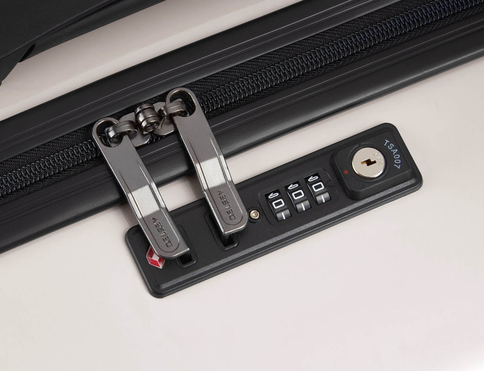 Η βαλίτσα είναι εξοπλισμένη με κλειδαριά TSA με κωδικό, προσφέροντας προσωπική ασφάλεια και παράλληλα επιτρέποντας στις αρχές ελέγχου αποσκευών (TSA) να την ανοίξουν με ειδικό κλειδί, χωρίς να προκληθεί ζημιά.