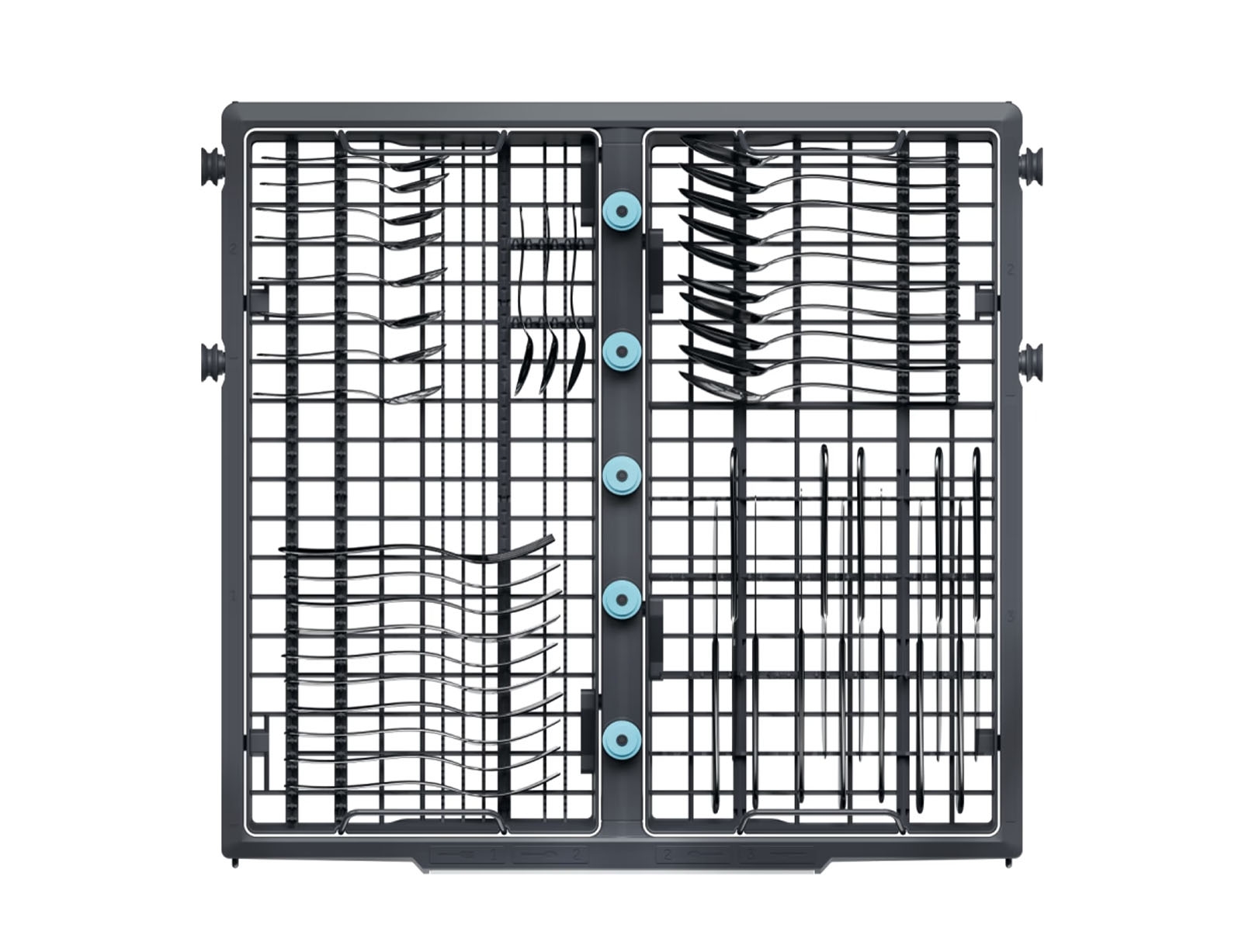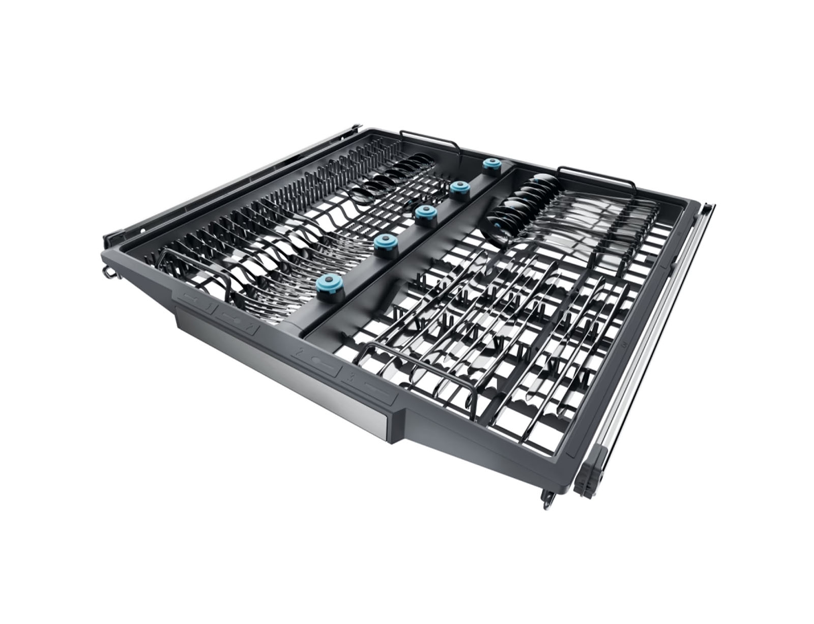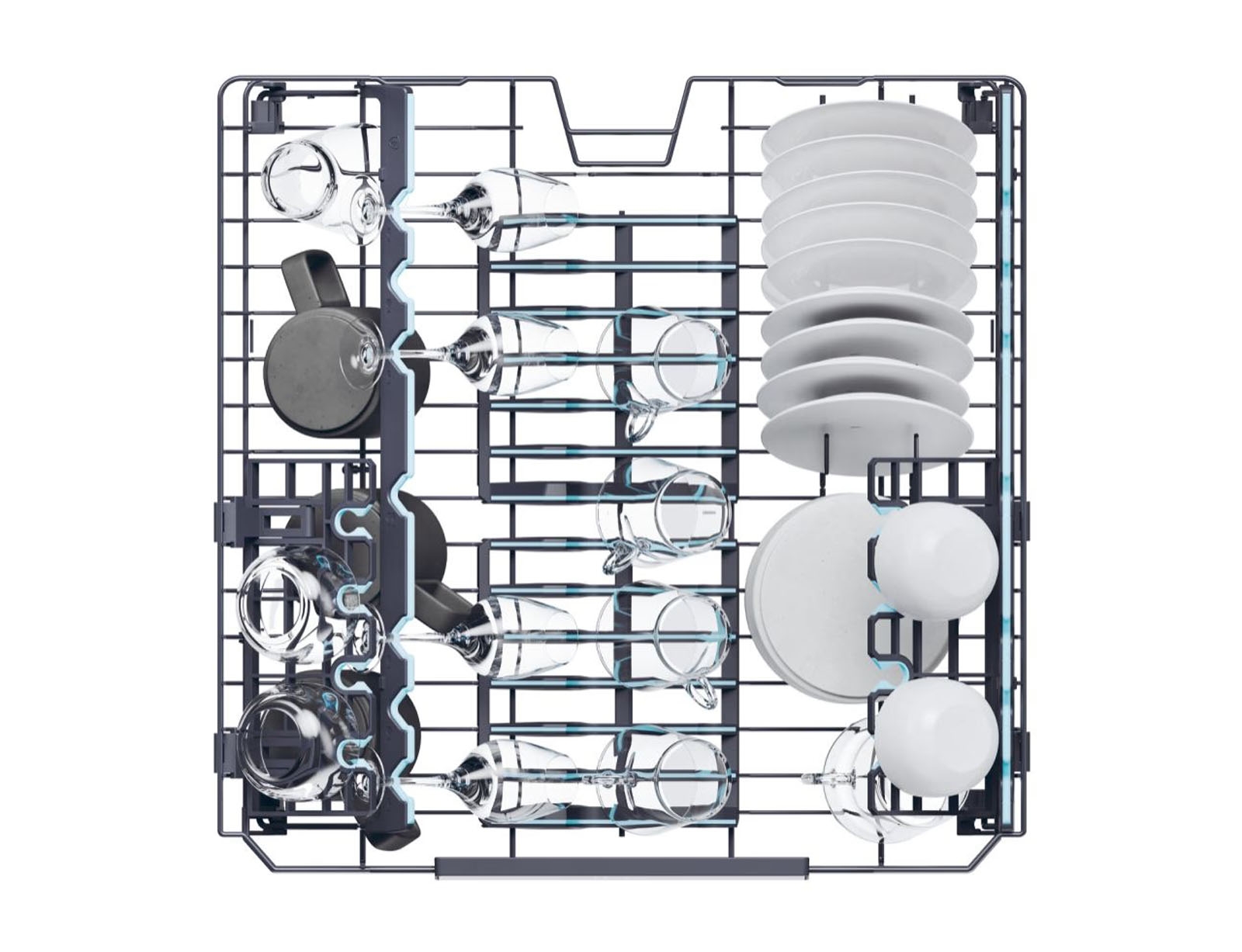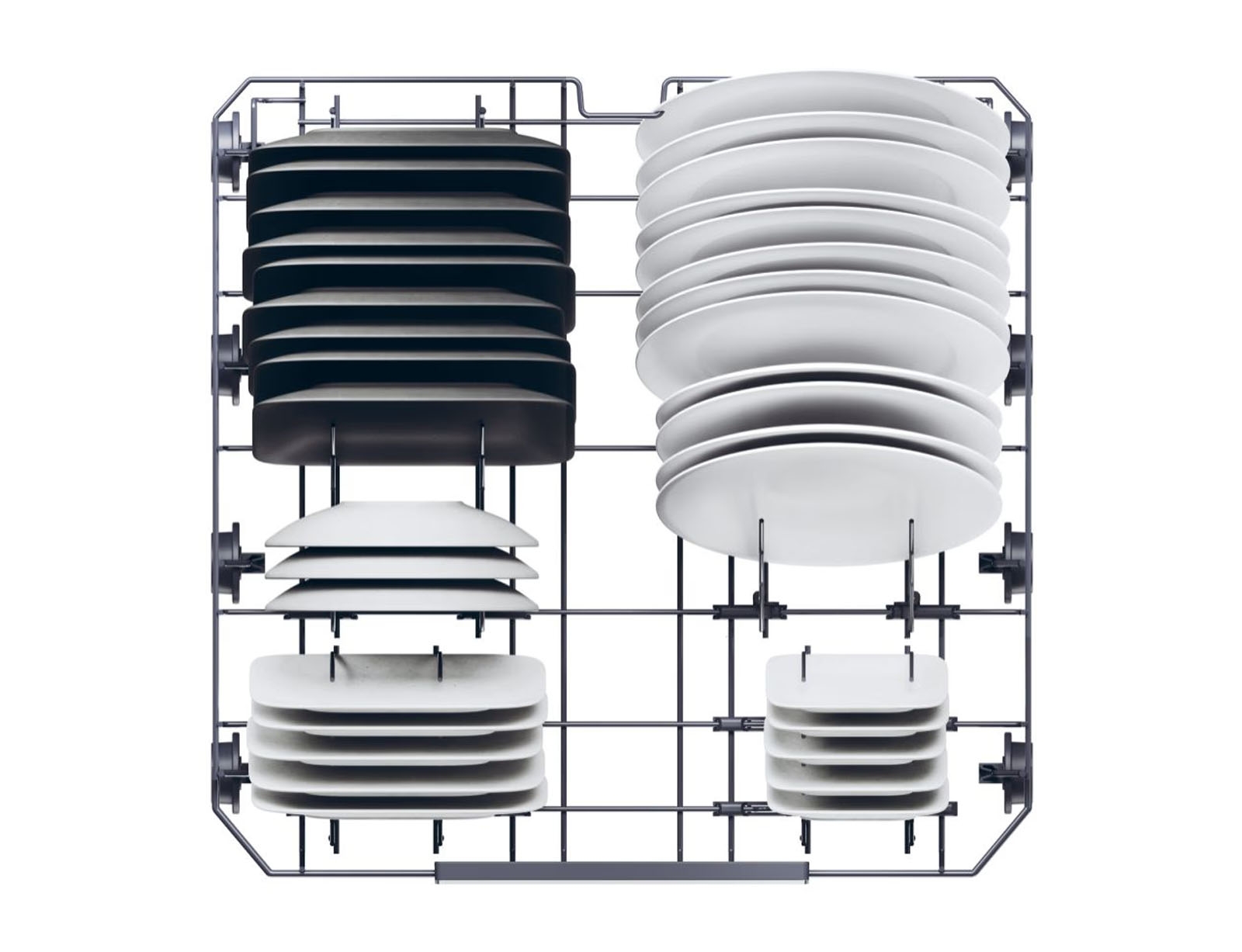 Τακτοποιήστε τα πιάτα σας όπως επιθυμείτε, χάρη στο ευέλικτο κάτω καλάθι που διαθέτει 8 σειρές πτυσσόμενων ραφιών που μπορείτε να χαμηλώσετε. Αυτό σας δίνει περισσότερο χώρο ακόμη και για τα πιο ογκώδη πιάτα.