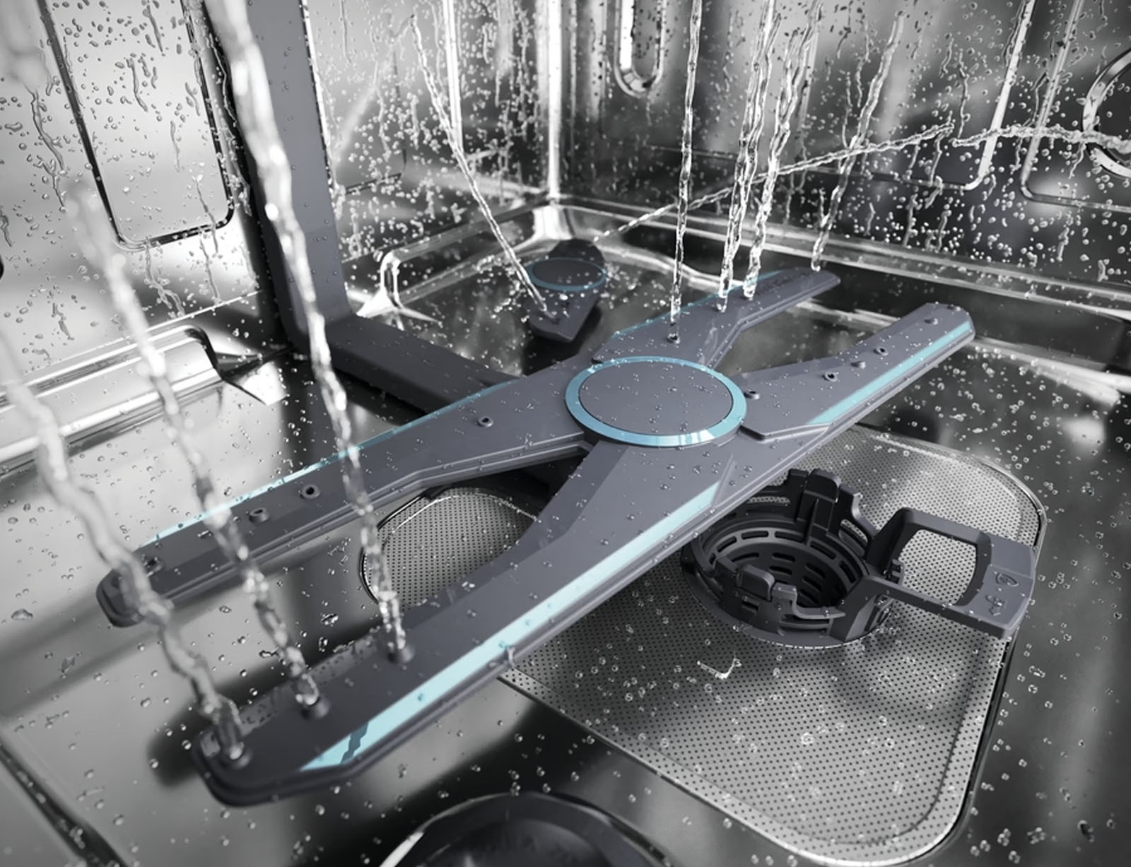 Ένας ολοκαίνουργιος, διεθνώς πατενταρισμένος, λειτουργικός σχεδιασμός στους βραχίονες ψεκασμού προσφέρει εξαιρετικό καθαρισμό σε σύντομο χρονικό διάστημα, ακόμη και με τα γρήγορα προγράμματα. Όλα αυτά είναι δυνατά χάρη στον ολοκαίνουργιο βραχίονα ψεκασμού σχήματος «H». Σχεδιασμένος να έχει διπλή δέσμη νερού, με μεγαλύτερη κάλυψη επιφάνειας και υψηλότερη πίεση ψεκασμού για να απομακρύνει αποτελεσματικά ακόμη και τις πιο επίμονες επικαθίσεις από τα σκεύη.