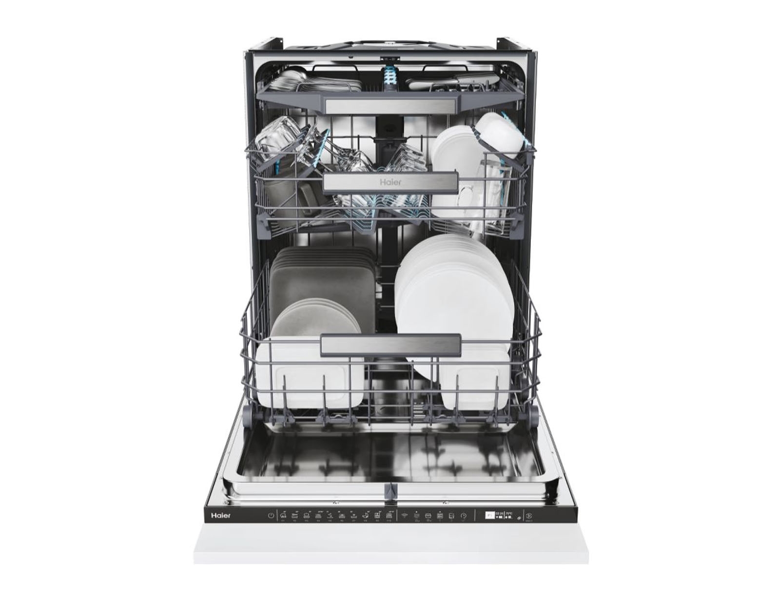Premium πλυντήριο πιάτων πλήρως εντοιχιζόμενο, με κινητήρα Inverter ενεργειακής απόδοσης Α για κορυφαίες επιδόσεις καθαρισμού και υγιεινής, με ταυτόχρονη εξοικονόμηση ενέργειας και νερού. Προσφέρει μοναδική και εξατομικευμένη εμπειρία καθαρισμού 3 βραχιόνων ψεκασμού και καινοτόμες τεχνολογίες όπως 3ο ράφι με ενσωματωμένους ψεκαστήρες νερού για τα μαχαιροπίρουνα. Επιπρόσθετα, διαθέτει προηγμένο υδραυλικό σύστημα καθαρισμού με πανίσχυρους βραχίονες ψεκασμού σε σχήμα Η και σύστημα έντονης πλύσης Power Wash, για έντονα λερωμένα σκεύη. Το αυτόματο άνοιγμα πόρτας προσφέρει πιο αποτελεσματική και φυσική εμπειρία στεγνώματος. Οι καινοτόμοι αισθητήρες και τα αυτόματα προγράμματα τεχνητής νοημοσύνης που ενσωματώνει, προσαρμόζουν και βελτιστοποιούν την αποτελεσματικότητά, συνδυάζοντας εξαιρετική μείωση της κατανάλωσης ενέργειας και νερού προσφέροντας σημαντικά οφέλη σε εσάς αλλά και στο περιβάλλον. Ταυτόχρονα με δυνατότητα σύνδεσης μέσω WiFi στην εφαρμογή της Haier hOn, προσφέρει πρόσβαση σε ένα ψηφιακό κόσμο με επιπλέον ειδικά προγράμματα, απομακρυσμένο έλεγχο και διαγνωστικούς ελέγχους.