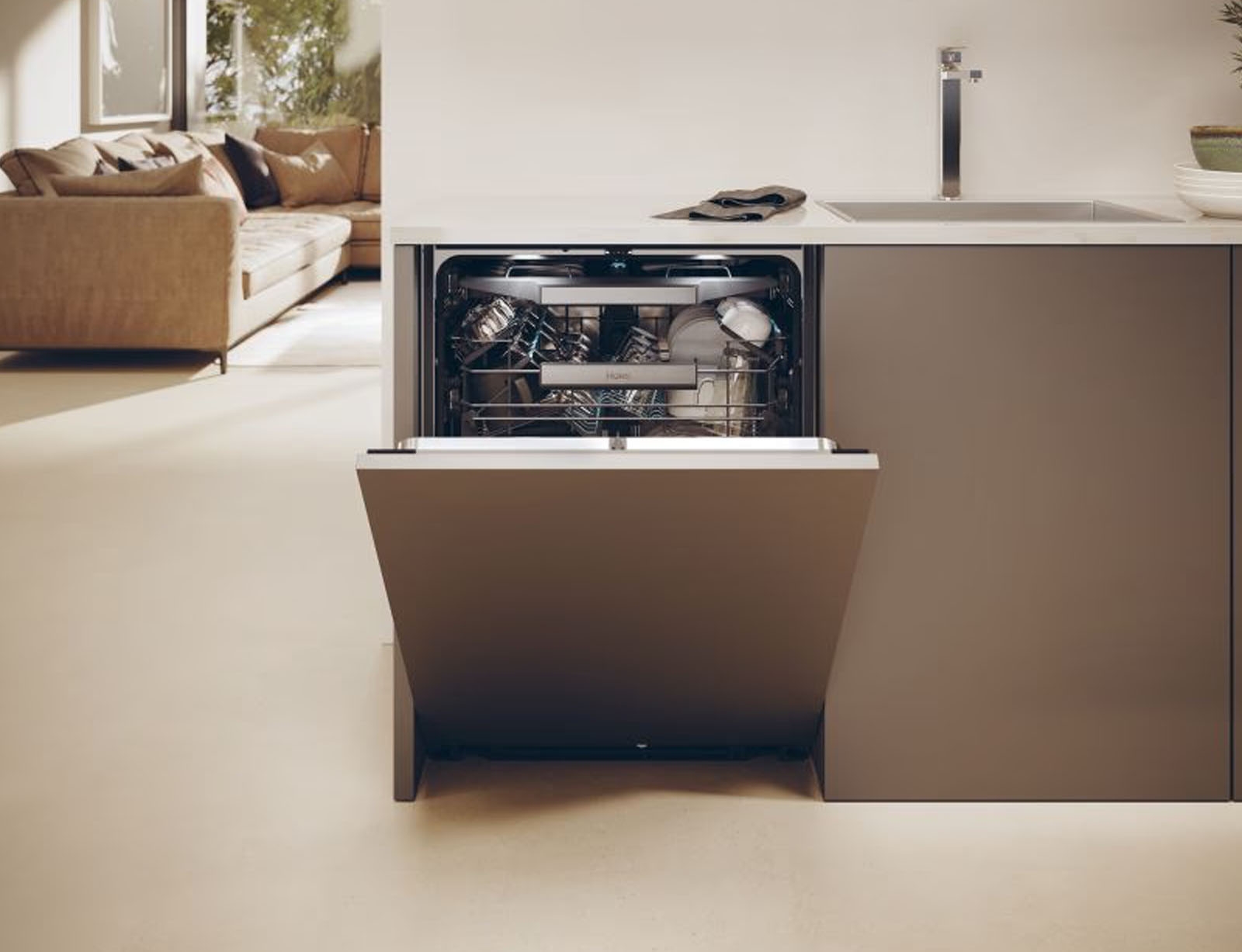 Το νέο πλυντήριο πιάτων της Haier έχει σχεδιαστεί για να ταιριάζει απόλυτα σε οποιοδήποτε ύψος επίπλων, ικανοποιώντας κάθε ανάγκη για διακριτικό και minimal design στην κουζίνα. Χάρη στη νέα λύση του συρόμενου μεντεσέ, η εγκατάσταση του προϊόντος είναι πολύ εύκολη και επιτρέπει το άνοιγμα της πόρτας ακόμη και με υψηλότερα έπιπλα κουζίνας.