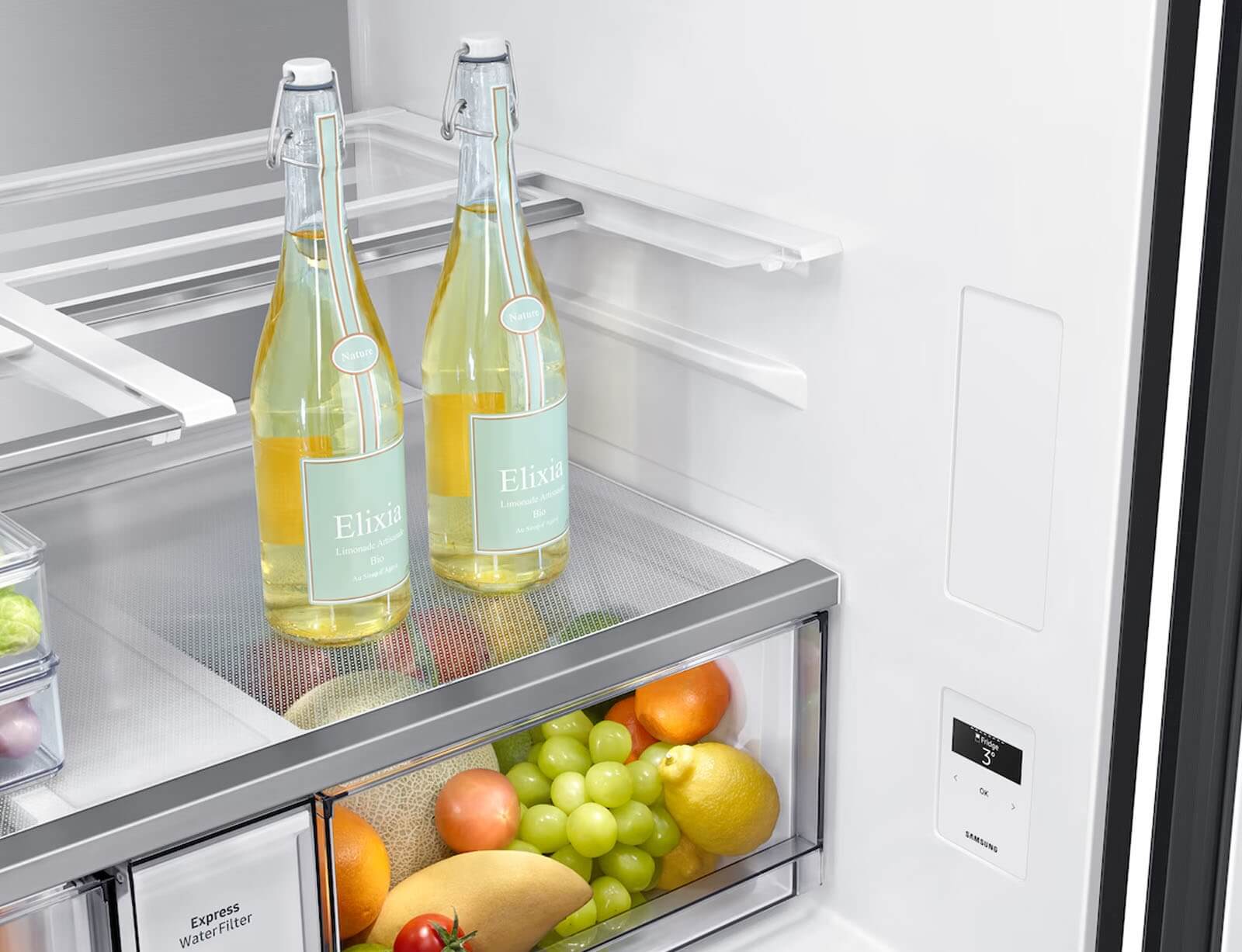Απολαύστε κρύο και αρωματικό νερό. Το Beverage Center™ είναι εύκολα προσβάσιμο. Διαθέτει κανάτα 1,4L που γεμίζει αυτόματα με καθαρό νερό, το οποίο μπορεί να αρωματιστεί με φρούτα και βότανα και να είναι πάντα έτοιμο για σερβίρισμα. Η κανάτα πλένεται στο πλυντήριο πιάτων και δεν περιέχει BPA.