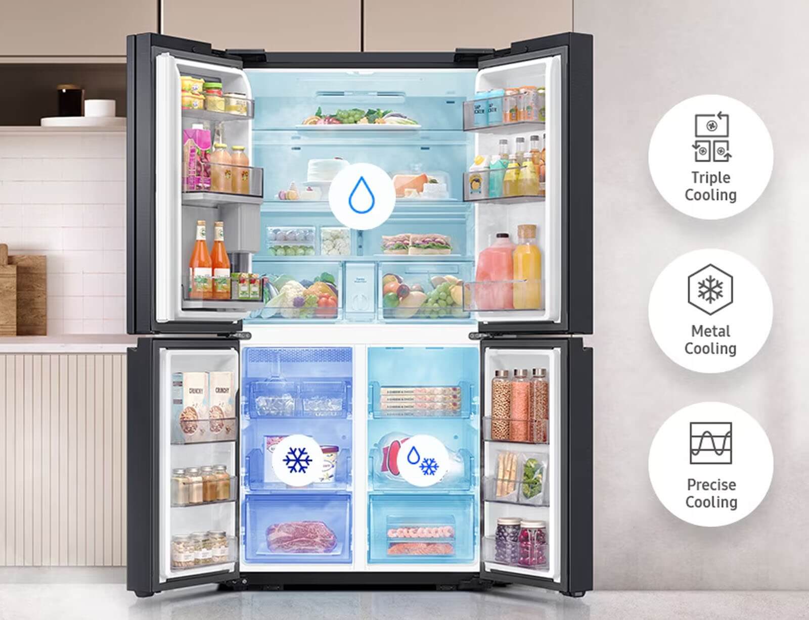 Κρατήστε τα τρόφιμα σας φρέσκα για μεγάλο χρονικό διάστημα και διατηρήστε το άρωμα και τη γεύση τους. Το Triple Cooling ρυθμίζει ανεξάρτητα τη θερμοκρασία και την υγρασία στους 3 χώρους και προλαμβάνει την ανάμειξη των οσμών. Το Precise Cooling ρυθμίζει επίσης κάθε διακύμανση θερμοκρασίας ενώ η μεταλλική πλάκα Metal Cooling βοηθάει στο να διατηρείται κρύο το ψυγείο.