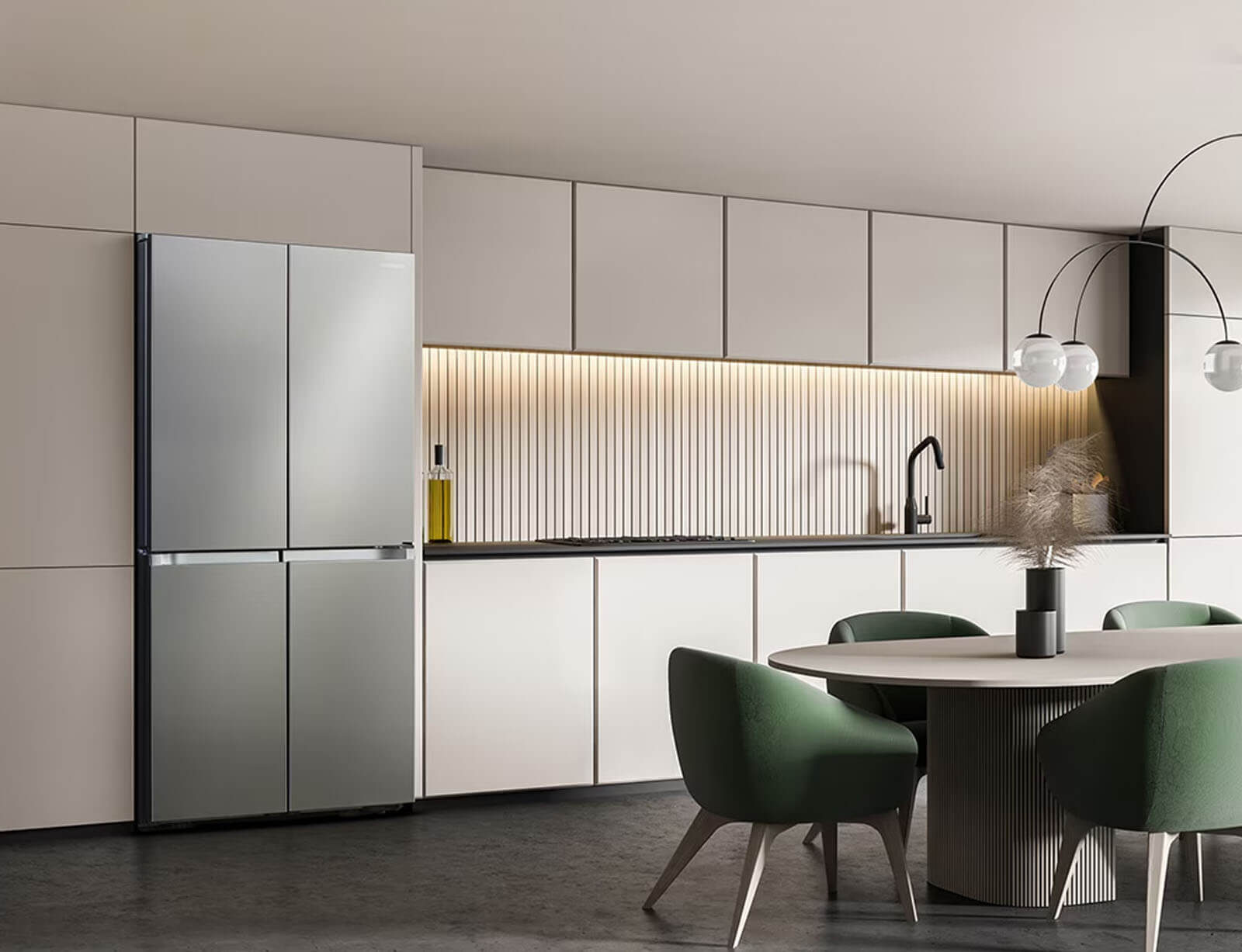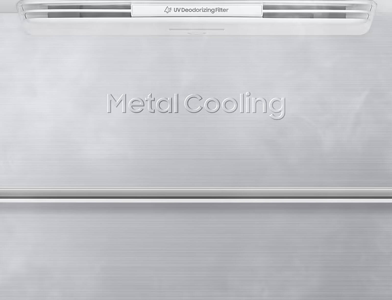 Διατηρήστε τα τρόφιμά σας φρέσκα, ακόμα και αν ανοίγετε και κλείνετε συχνά την πόρτα. Η μεταλλική επιφάνεια Metal Cooling στο πίσω μέρος του ψυγείου, βοηθά στη διατήρηση της βέλτιστης εσωτερικής θερμοκρασίας. Διατηρεί το κρύο και εμποδίζει την απώλεια ψυχρού αέρα όταν η πόρτα είναι ανοιχτή. Επιπλέον αναπληρώνει γρήγορα οποιαδήποτε απώλεια θερμότητας όταν κλείνει και πάλι. Τέλος, προσθέτει μια κομψή εμφάνιση και ειναι εύκολο να καθαριστεί εύκολα.