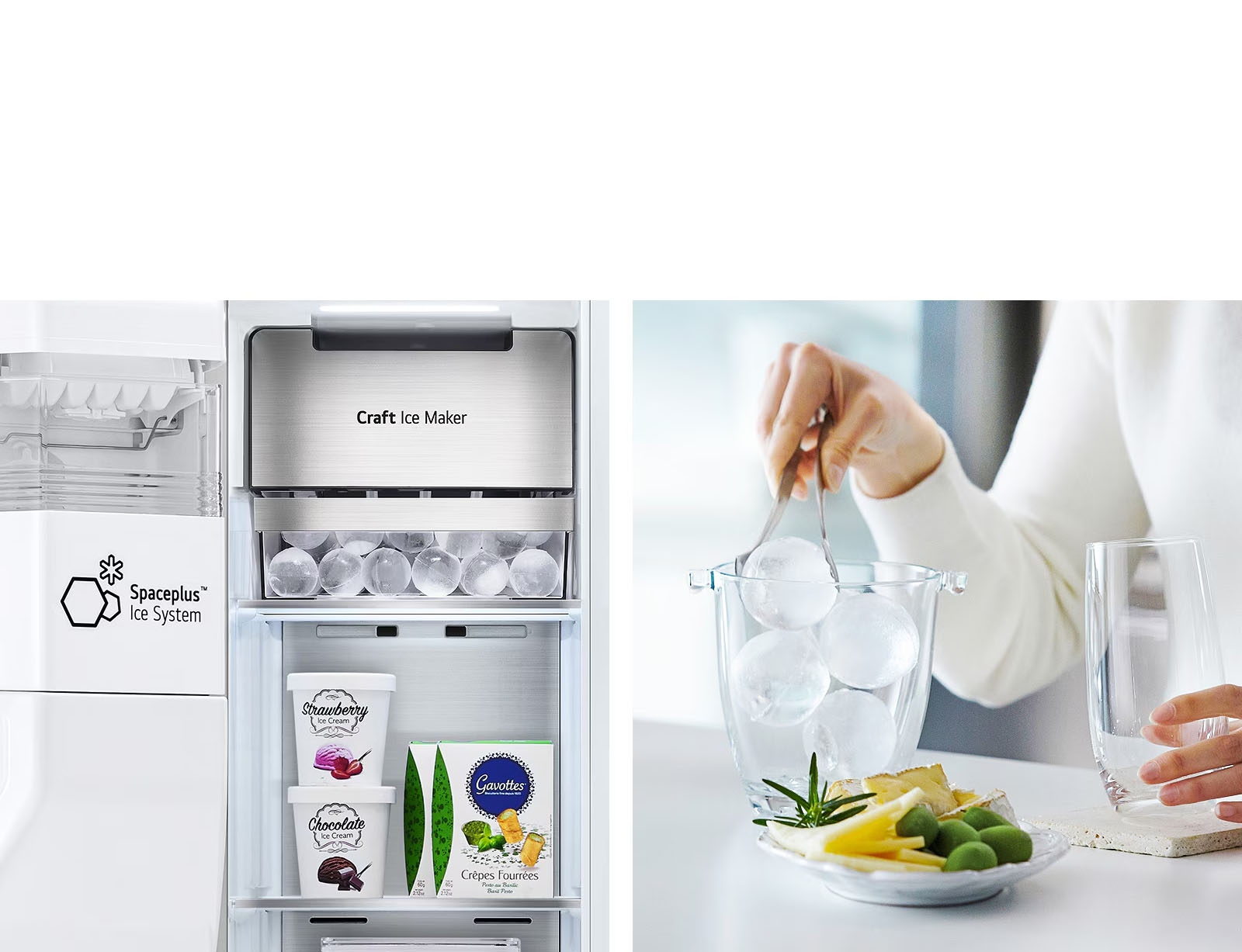 Αναβαθμίστε τα ποτά σας με τα σφαιρικά παγάκια Craft Ice™ (αποκλειστικότητα της LG) που λιώνουν αργά.