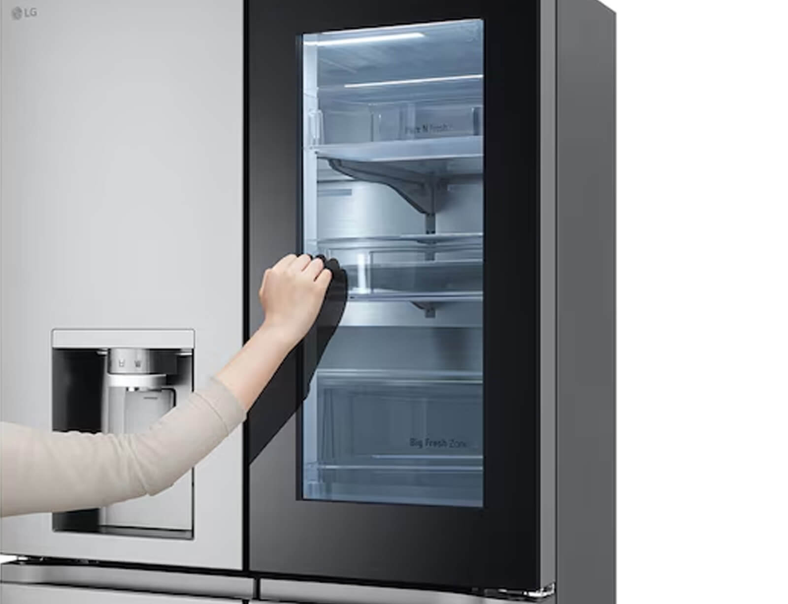 Χάρη στην έξυπνη τεχνολογία InstaView® της LG, δεν χρειάζεται πλέον να ανοίγετε την πόρτα του ψυγείου LG για να δείτε το περιεχόμενό του. Απλώς πατήστε δύο φορές στο φιμέ τζάμι και θα ανάψει, επιτρέποντάς σας να ελέγξετε το περιεχόμενο. Γιατί; Αυτό εμποδίζει την έξοδο κρύου αέρα, διατηρεί σταθερή τη θερμοκρασία στο εσωτερικό του ψυγείου, εξοικονομεί ενέργεια και διατηρεί τα τρόφιμά σας πιο φρέσκα για μεγαλύτερο χρονικό διάστημα.