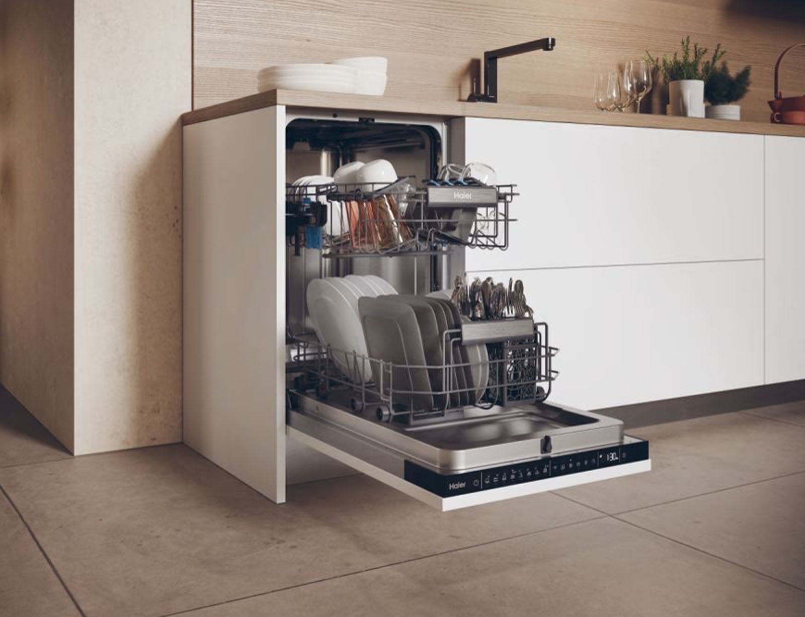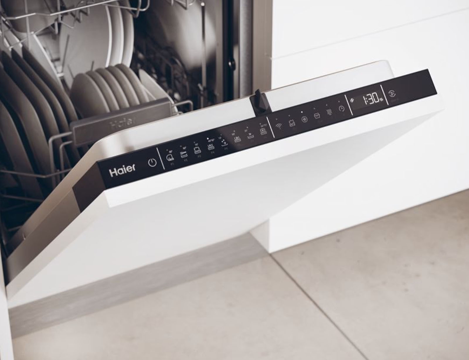Εάν χρειάζεστε τα πιάτα σας να είναι τέλεια στεγνά, μπορείτε να επιλέξετε την επιλογή ExtraDry στην οθόνη Haier I-Pro Shine. Ο τελικός χρόνος προγράμματος θα παραταθεί κατά 10 λεπτά και ακόμη και τα ποτήρια και τα πλαστικά αντικείμενα θα είναι τέλεια στεγνά στο τέλος του κύκλου.
