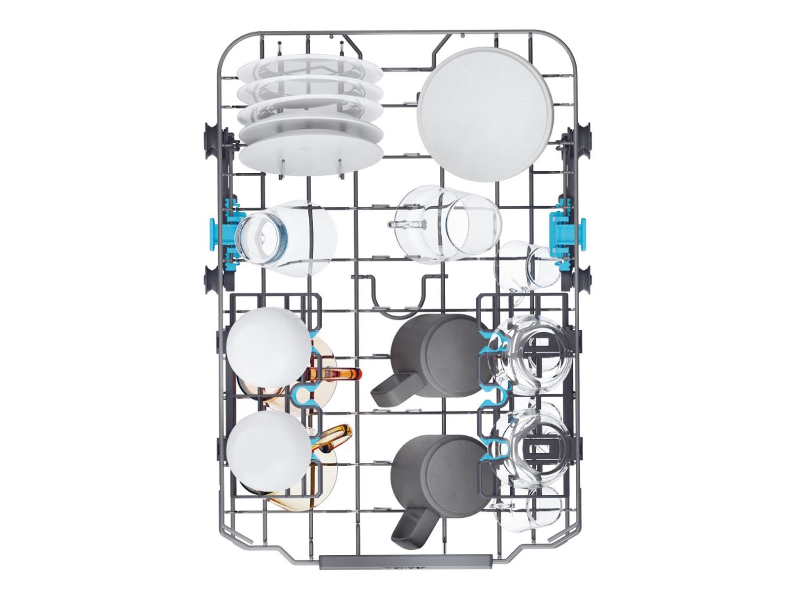 Τα πλυντήρια πιάτων Haier I-pro-Shine είναι εξοπλισμένα με νέες θήκες ποτηριών. Χάρη στην επιφάνεια από καουτσούκ που τοποθετείται στα σημεία επαφής, εξασφαλίζουν μέγιστη προστασία για ευαίσθητα αντικείμενα όπως ποτήρια κρασιού.