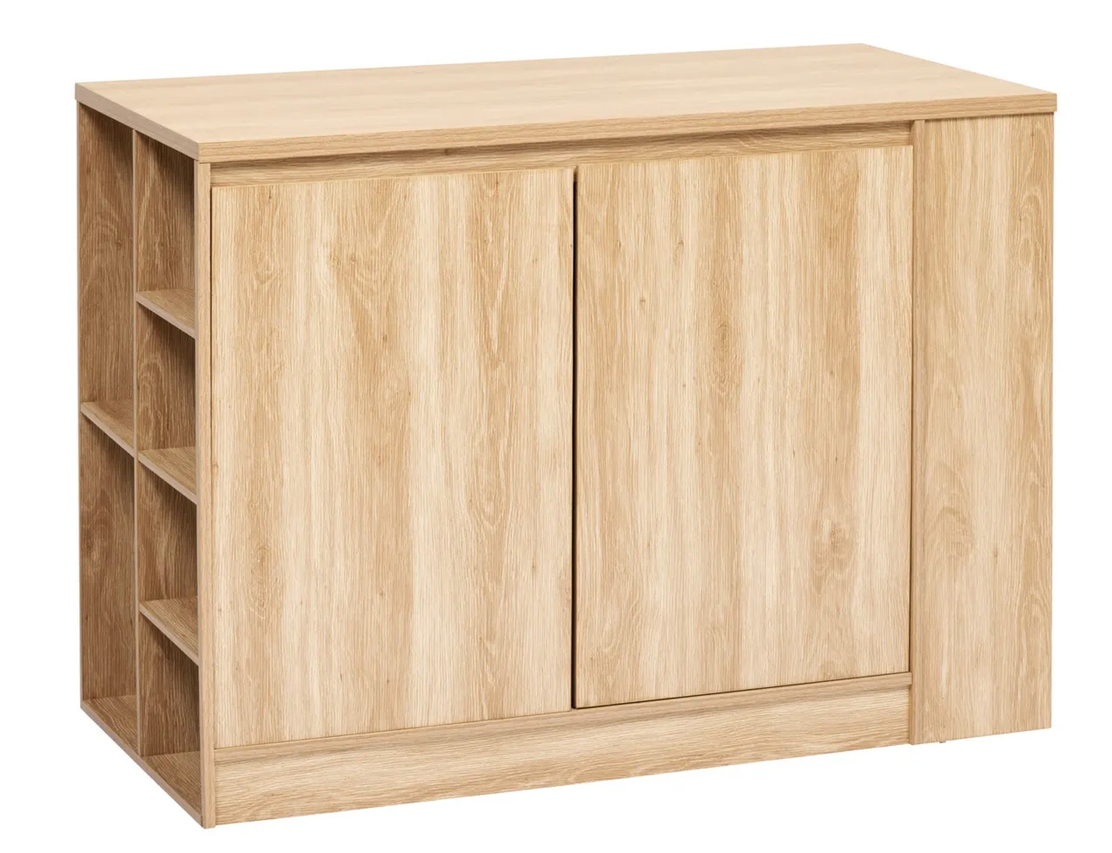 Η νησίδα κουζίνας Abana από 5five είναι η απόλυτη επιλογή για όσους αναζητούν έναν συνδυασμό λειτουργικότητας, αισθητικής και ευελιξίας. Με τον μοντέρνο σχεδιασμό της και τις πρακτικές της δυνατότητες, μεταμορφώνει τον χώρο της κουζίνας σας σε ένα άνετο, εργονομικό και οργανωμένο περιβάλλον. Κατασκευασμένη από μοριοσανίδα (Part BDE1) προσφέρει σταθερότητα και αντοχή στη χρήση, ενώ η λεία επιφάνειά της καθαρίζεται εύκολα, κάνοντάς την ιδανική για καθημερινή χρήση. Διαθέτει ντουλάπια για έυκολη αποθήκευση και ανοικτά ράφια για γρήγορη πρόσβαση σε ποτήρια, μπολ, πιάτα ή υλικά.